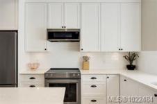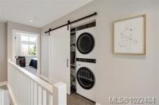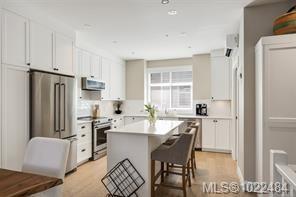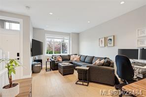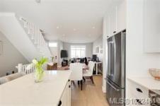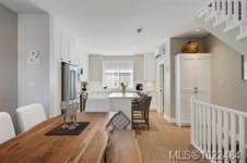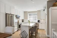 Here is an exceptional valued 3 level townhome with timeless design and is located just minutes to downtown Sidney! The main floor offers an open floor plan with 9 ft ceilings, living and dining area opening to the kitchen with stainless steel appliance, quartz countertops, Island and a 2 piece powder room. Upstairs offers 9 ft ceiling and 2 options for a primary bedroom, both with ensuite baths along with laundry. The lower level offers another bedroom with bathroom and access to the single car garage. You'll also enjoy the EV charger, interlocking brick patio and heat pump for heating and cooling. This small complex backs onto Melville Park and is just steps to Resthaven Park and the Ocean. This central location offers easy access to the Ferries, the highway and all that Sidney offers to those in the neighborhood.