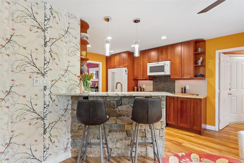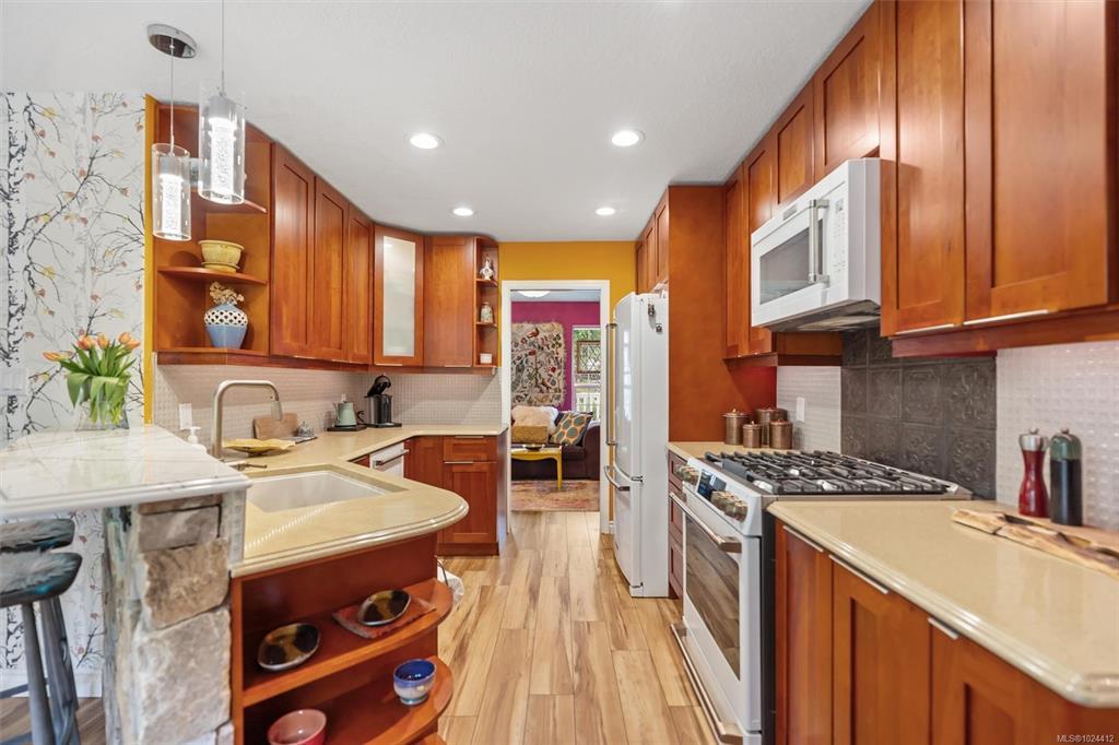 This beautifully upgraded home blends quality, comfort, and an easy Shawnigan Lake lifestyle. Recent improvements include a 2024 40 yr roof, 2023 Mitsubishi heat pump with AC, premium Twelve Oaks flooring, quartz kitchen counters, GE gas range, and solid wood cabinetry. Sunlit living spaces flow to a fully fenced backyard designed for barefoot living, stargazing, and year round enjoyment. Relax under the 2023 pergola, unwind in the cedar lined infrared sauna, or wander the lush garden with its sequence of seasonal colour. The bright kitchen with pantry and eating nook, spacious living room with propane fireplace, and flexible front rooms offer space for work or entertaining. Upstairs, the serene primary suite features added picture window, walk through closets, and a spa like ensuite. Located on a quiet, friendly street with easy access to Galland Park, trails, the lake and three village centres, this is a home that elevates everyday living.