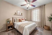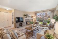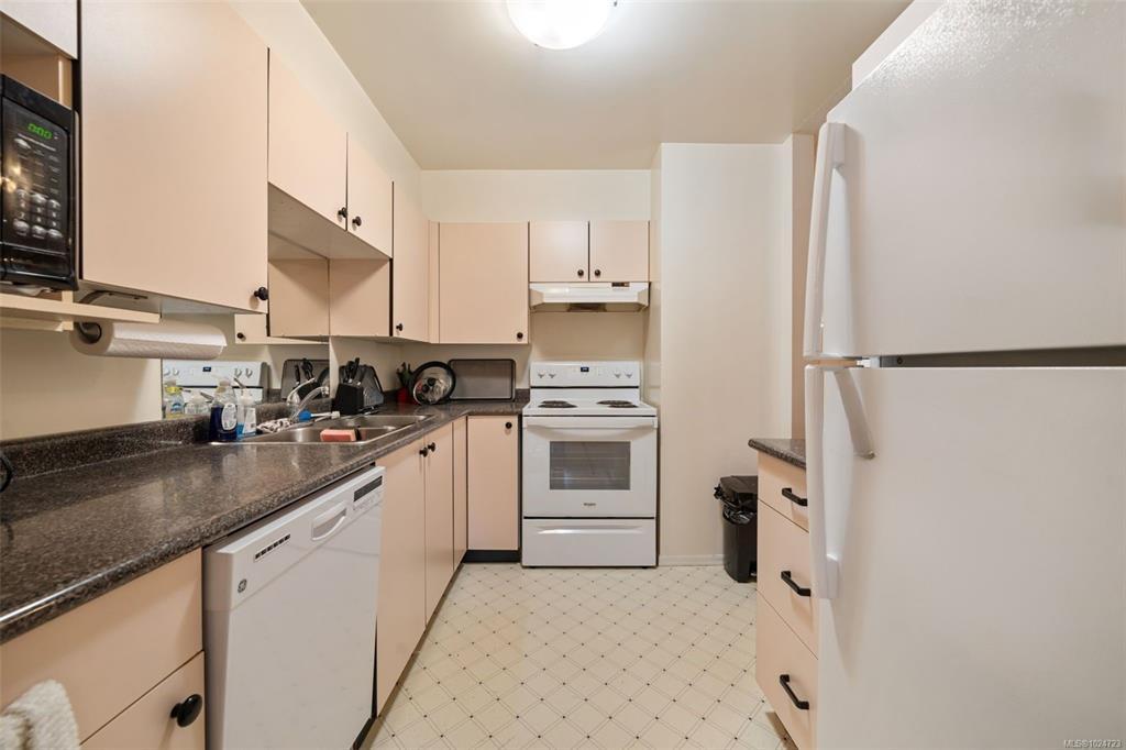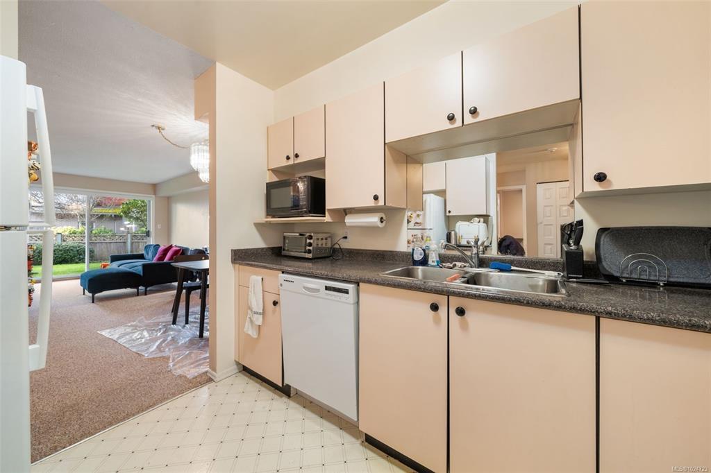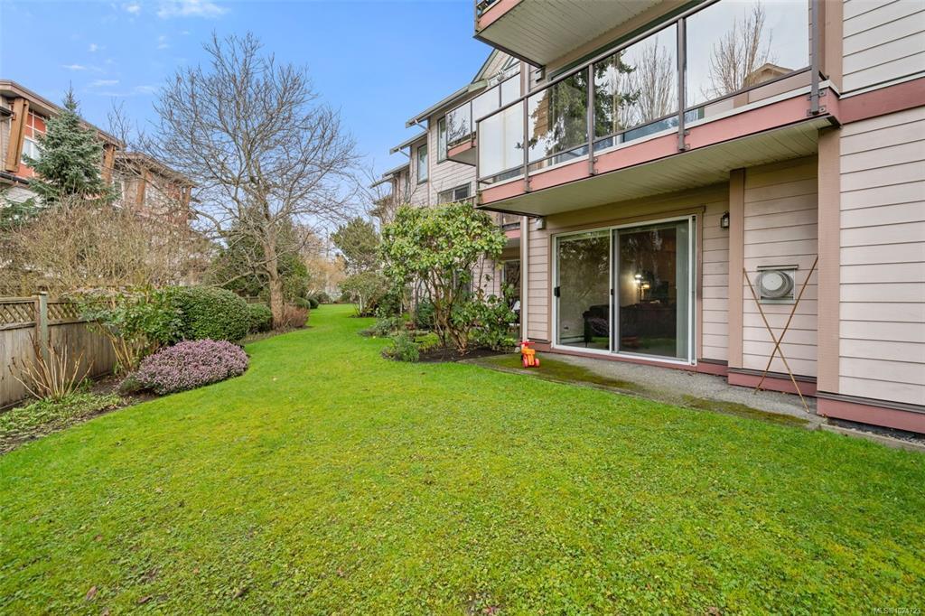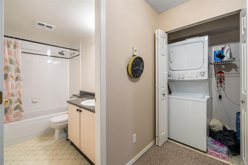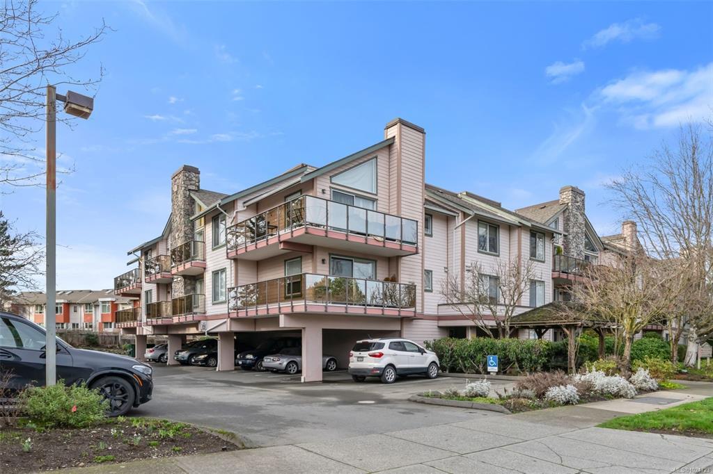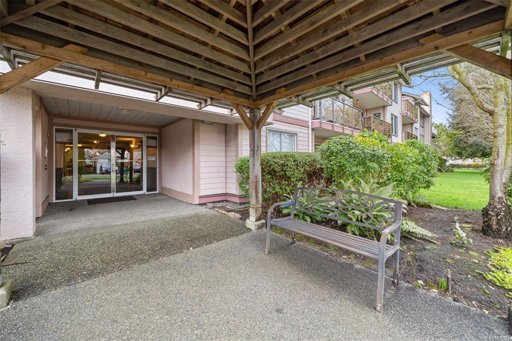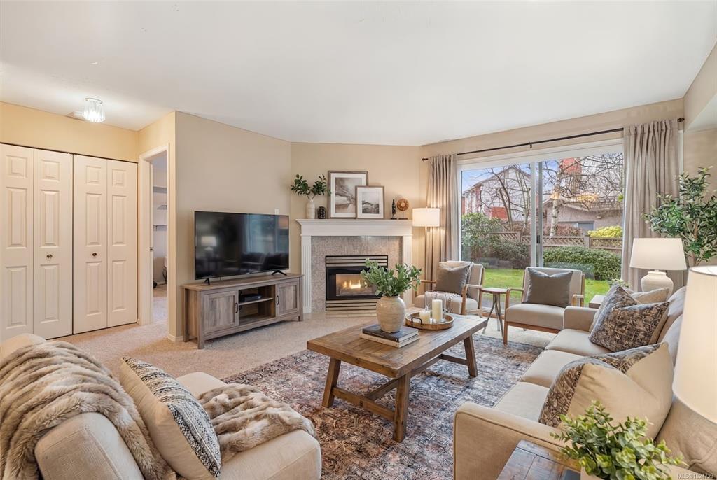 Welcome home to this large, bright two bedroom suite offering an easy, low maintenance lifestyle in a convenient central location. Laminate flooring runs throughout, and full size in-suite laundry adds everyday comfort. The entry opens to a spacious living room with a cozy gas fireplace and an adjoining dining area that easily hosts friends and family. The kitchen includes plenty of workspace plus a casual eating area for morning coffee. Retreat to the generous primary bedroom featuring a walk-in closet and direct access to the full bathroom. Outdoors, enjoy a large west facing patio that looks onto a quiet, private rear area of the building, ideal for relaxing evenings and barbecues. Minutes to Uptown, the Galloping Goose and Lochside trails, and transit right nearby for simple commuting.