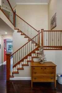 gym. Upstairs, you’ll find four spacious bedrooms, highlighted by a serene primary bedroom