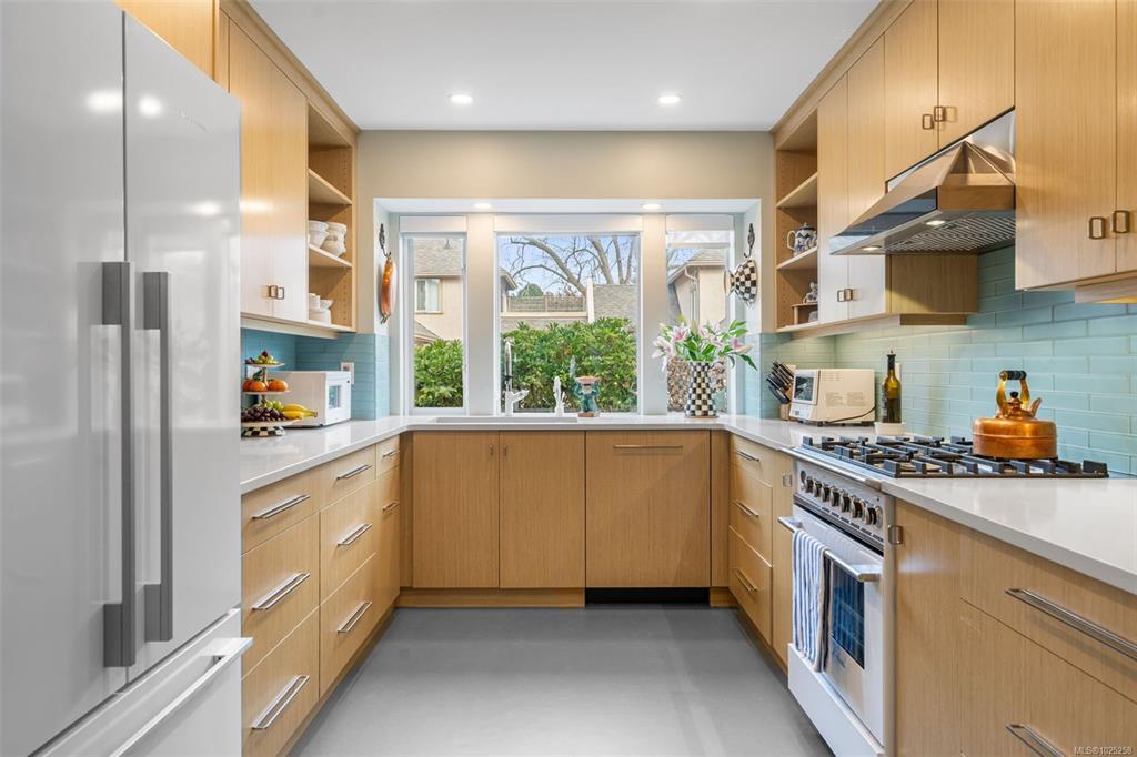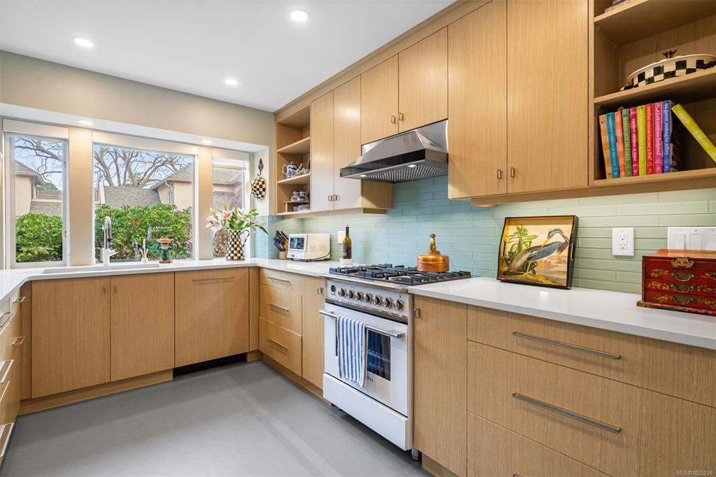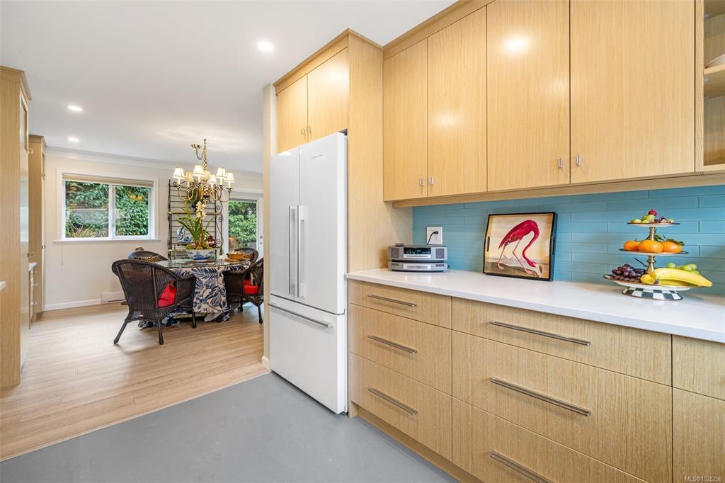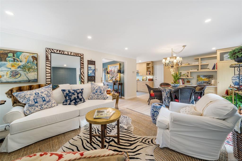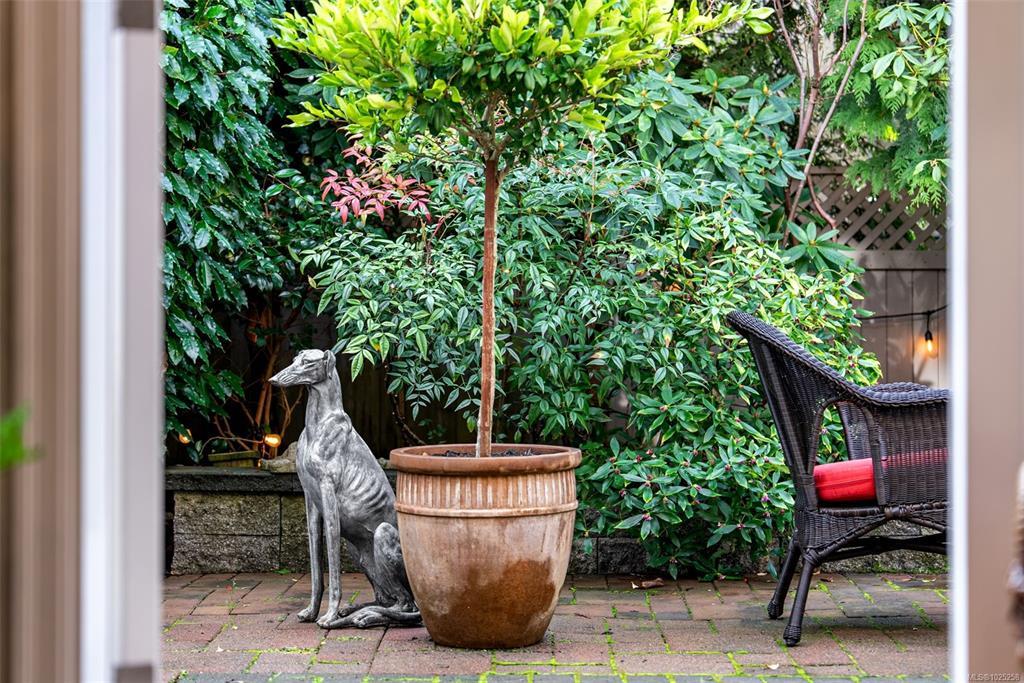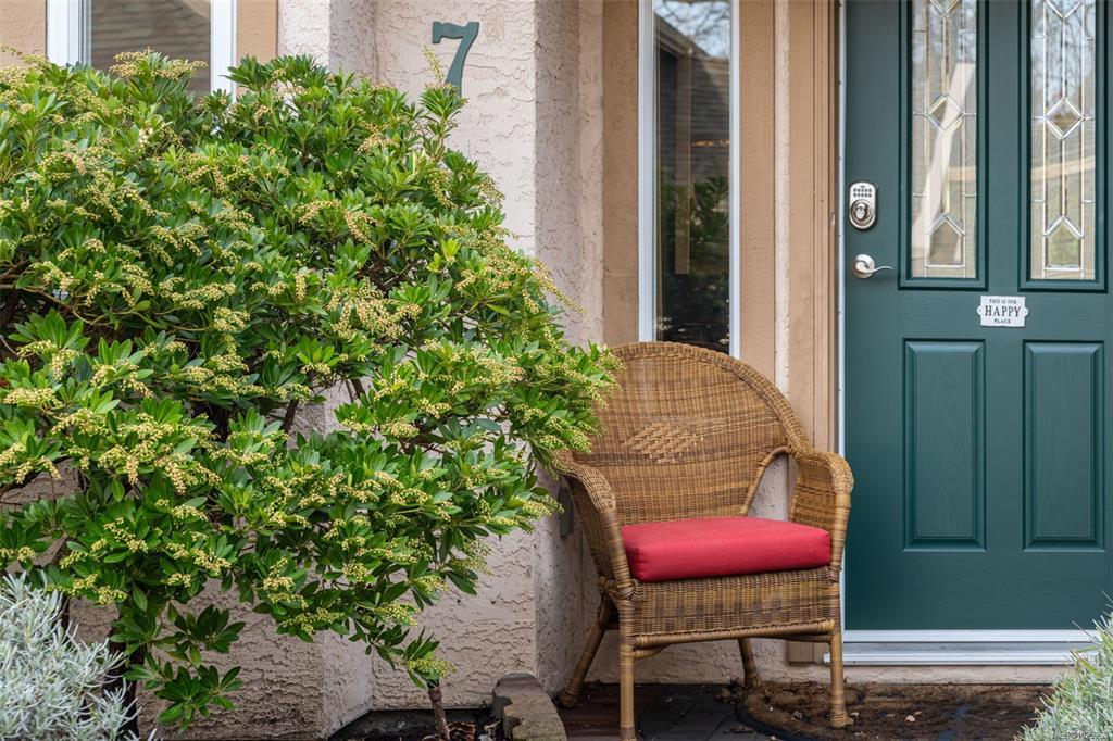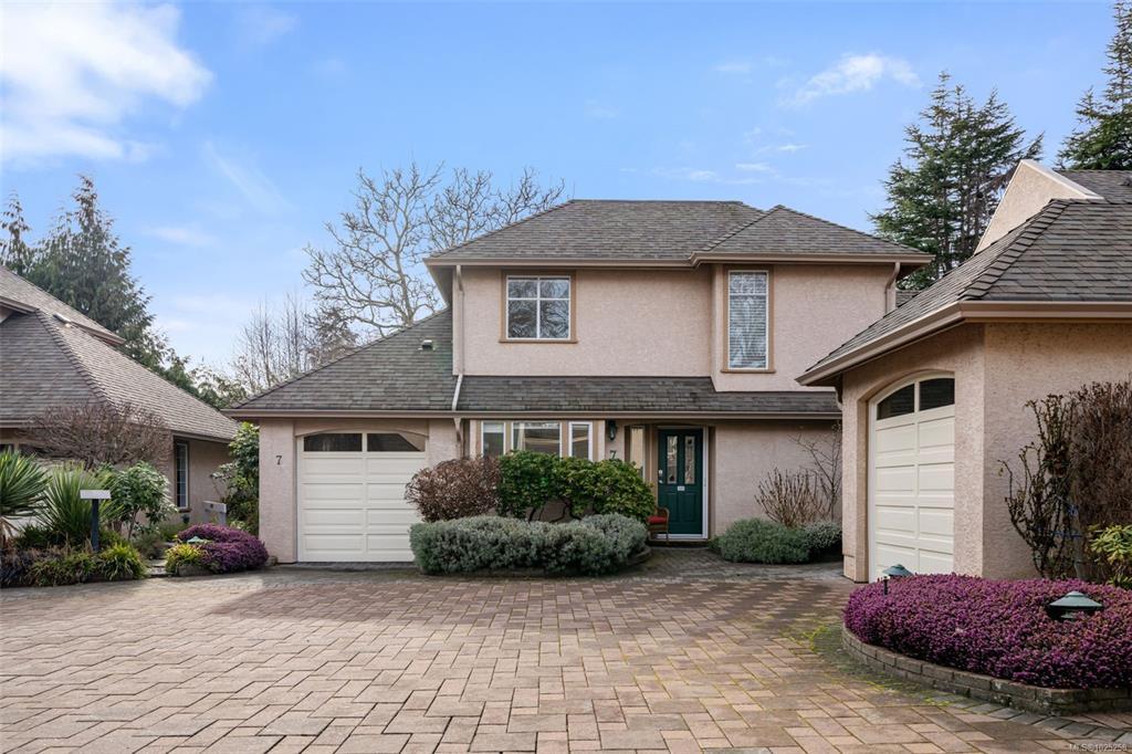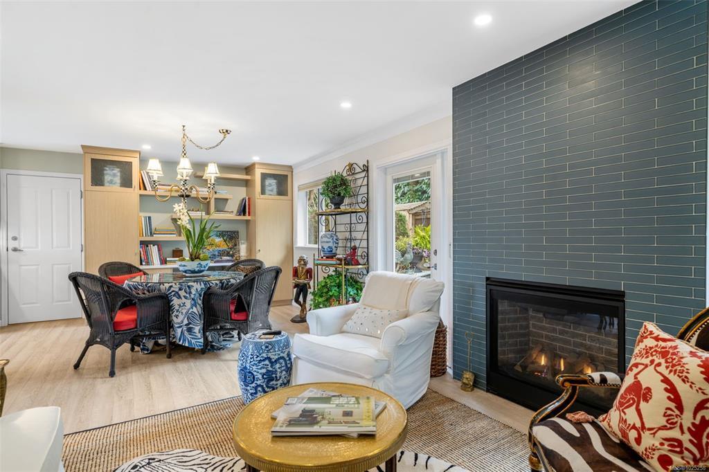 Downsizing never looked so good. Sophisticated LEVEL ENTRY townhouse with seaside-cottage feel in exceptional location. The exclusive Glen Undine complex is steps from Cadboro Bay Village & the beloved Cadboro-Gyro park and beach. Thoughtfully designed layout invites indoor/outdoor entertaining & relaxation, flow-through living/dining, feature gas fireplace, large windows, built-in storage & level access to utterly charming SW-facing patio garden. Sunny, remodelled kitchen has quartz counters, generous fitted drawers & cupboards, instant hot water faucet & Fisher & Paykel appliances; sep laundry room with sink; spacious bedroom with walk-in closet and ensuite. Upstairs the easy living continues: primary bedroom with walk-in closet & lush treetop views; gorgeous spa bathroom, bedroom/office & flex room. Very private end unit, enclosed garage & storage plus bonus outdoor parking spot. Updates by current owner include retractable window screens, new hot-water heater & garden enhancements.