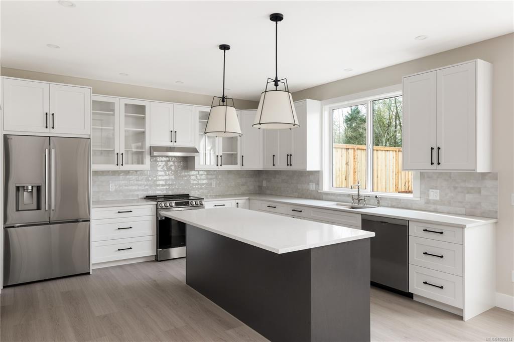 Beautiful brand-new, modern home in a highly sought-after location, just minutes from the ocean, marina, and the charming village of Cowichan Bay with its shops, restaurants, and amenities. This high-end, newly built residence offers 2,782 sqft of thoughtfully designed living space with quality craftsmanship throughout. Backing onto green space and a scenic trail, the property offers privacy, outdoor access, and coastal convenience. The main home features 4 beds and 3 baths, an open-concept kitchen and living area with a bar, a large walk-in pantry, and ample storage. A legal 1-bedroom suite adds flexibility with its own private entrance, ductless heat pump with AC, and in-suite laundry—ideal for family, guests, or rental income. Built to Step 4 Energy Code, the home includes a heat pump for year-round comfort and camera surveillance. With high-quality finishes and functional design, this move-in-ready home offers space, flexibility, and convenience in a quiet, desirable community.