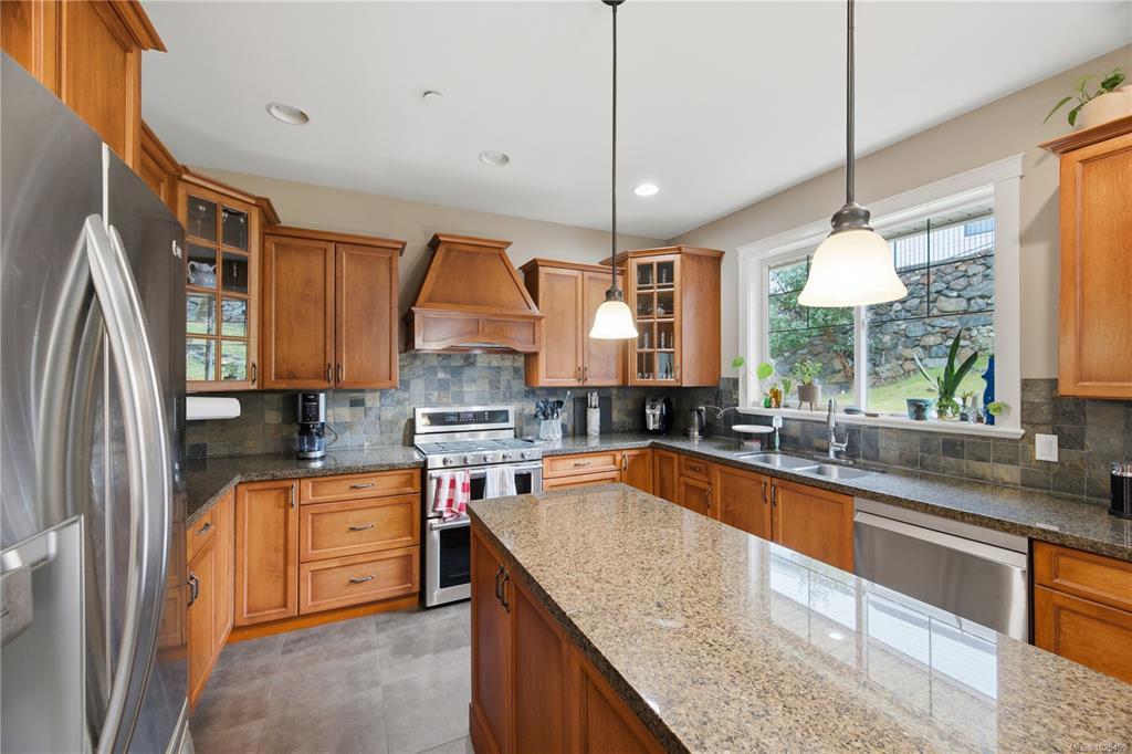 Welcome to this elegant Bear Mountain family home, located on a quiet private street. Featuring beautiful flooring throughout, a stunning kitchen with island and breakfast nook, and seamless flow to the family and dining areas. Enjoy mountain views from the backyard and outdoor entertaining space. The main level offers 3 spacious bedrooms, including a primary with walk-in closet and luxurious ensuite. Lower level includes a family/recreation room (can be used as fourth bedroom), washroom, and approx. 500 sq. ft of storage. Double-car garage. Close to amenities, parks, and trails—an outstanding opportunity in a premier neighbourhood.
