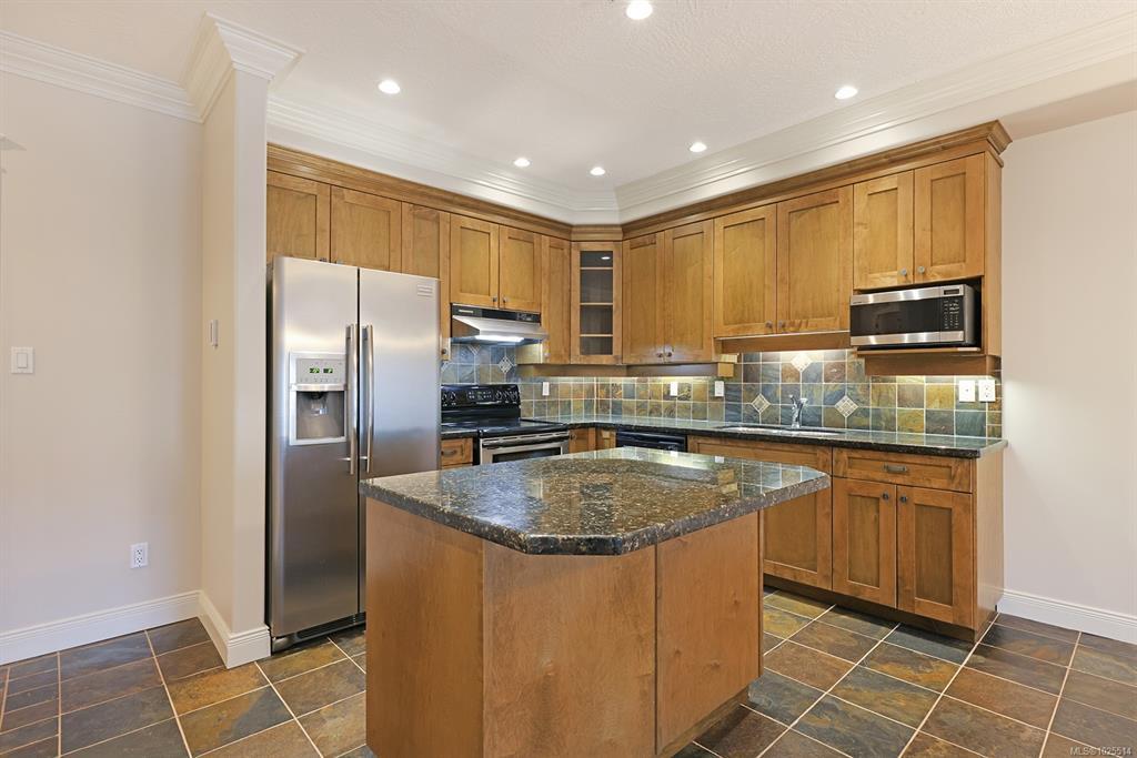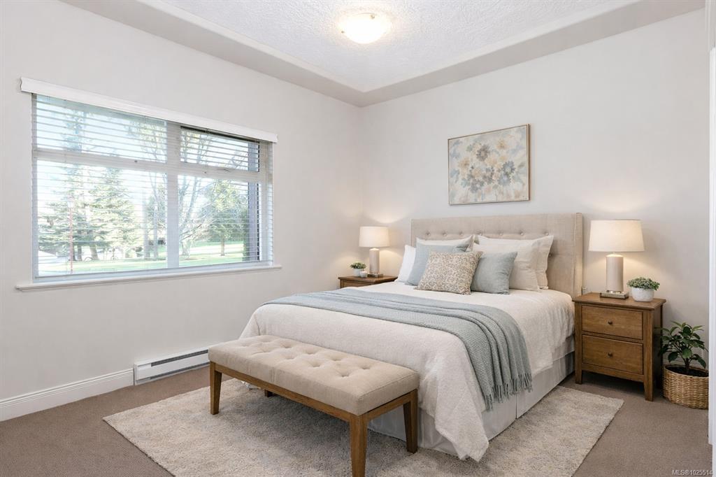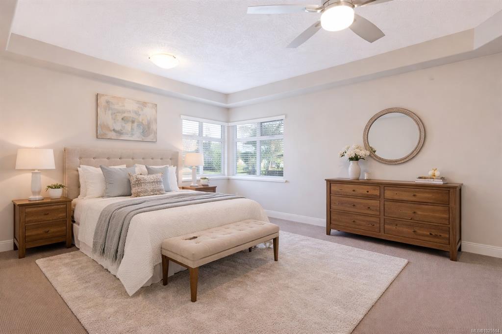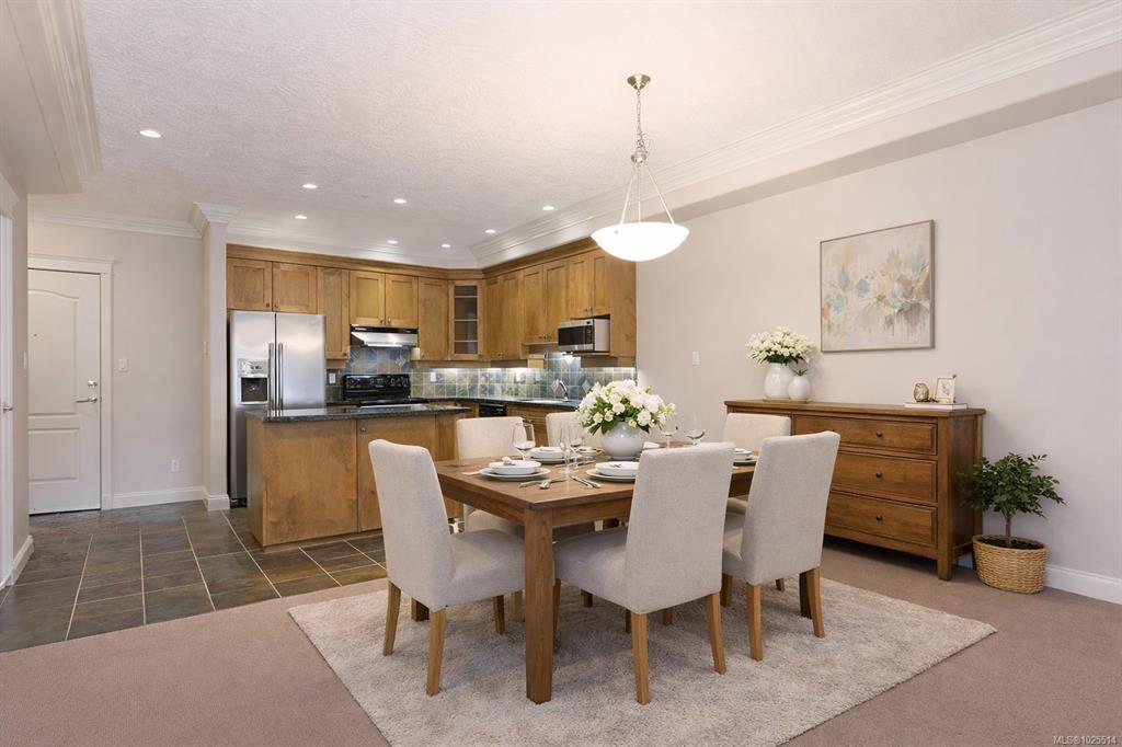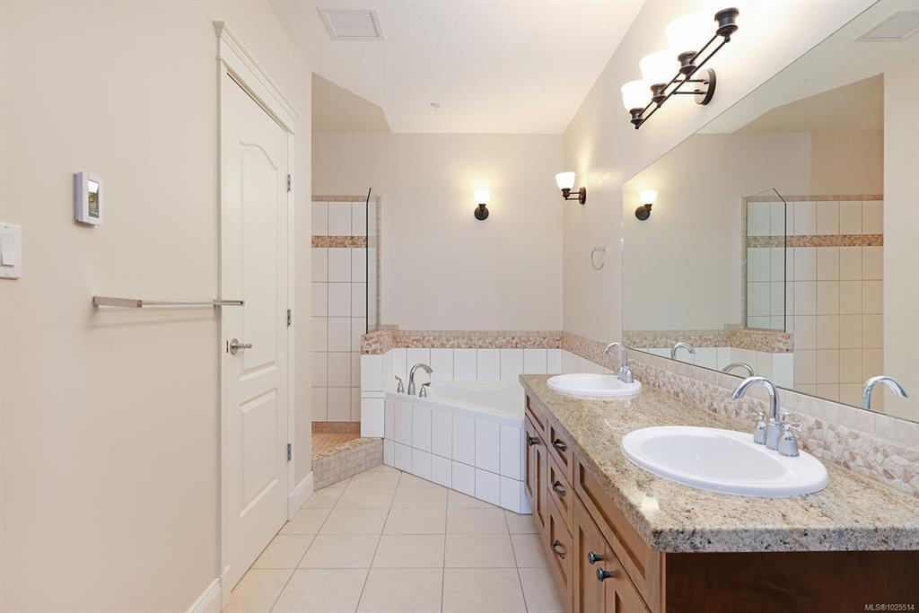 Corinthia Estates at Crown Isle offers resort-style, low-maintenance living in a prime golf course community. This well-kept 1,270 sqft condo features 2 bedrooms, 2 bathrooms, and a bright, functional layout suited to everyday comfort or a lock-and-leave lifestyle. The kitchen includes stone counters, quality cabinetry, stainless appliances, and an island with seating that opens to the main living and dining area with a natural gas fireplace. Step onto the covered east-facing patio with BBQ hookup — ideal for relaxed mornings and evening downtime, with easy pet access. The spacious primary bedroom includes a 5-piece ensuite with heated tile floors, double vanity, deep tub, separate tiled shower, and private water closet. A second bedroom, full bath, and large in-suite laundry/storage room with utility sink add flexibility. Secure underground parking and storage complete this package.