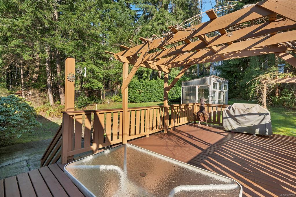 Quathiaski Cove home with 2 attached carports & workshop on beautifully landscaped 1.09 acre property, a short walk from the shopping plaza! This 4 bedroom 3 bathroom one-owner home has been lovingly maintained over the years. The layout of the home is a split entry with main floor on the upper level. The living space on the main floor is nice & bright and a door leads from the kitchen to the arbour covered back deck with steps to back yard. There are 3 bedrooms and 2 bathrooms on the main floor, including the primary bedroom with 2 closets & 3pc ensuite. On the lower floor you’ll find a small workshop area, laundry room, 3pc bathroom, hobby room, family room with woodstove on tile hearth & 4th bedroom. Other outbuildings include a 2 bay carport & greenhouse. This property boasts a large fenced garden area with irrigation, several mature fruit trees, a nice variety of ornamental shrubs & trees & well treed perimeter that provides lots of privacy.