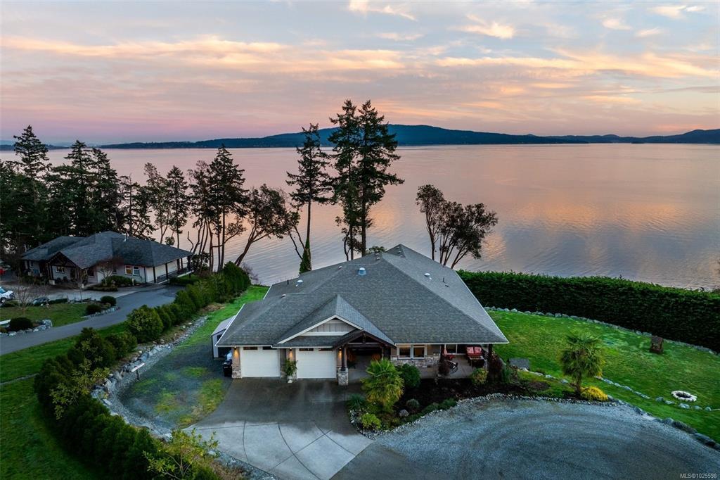 Set on 3.2 acres with walk-on oceanfront, this custom home offers sweeping, unobstructed views across Saanich Inlet in the sought-after Whiskey Point area of Mill Bay. Built in 2015, the residence features 4 bedrooms and 3 bathrooms with a thoughtful layout designed to capture natural light and ocean views from the living spaces. Enjoy true waterfront living with direct beach access ideal for kayaking, paddleboarding, or quiet shoreline walks. The expansive acreage provides privacy and a peaceful West Coast setting, while a private pickleball court adds a rare recreational feature seldom found in oceanfront properties. Located approx 35 minutes from downtown Victoria, this property offers the perfect balance of seclusion and convenience, with easy access to marinas, amenities, golf, wineries, world class private schools and commuter routes. Look forward to the end of the day, sitting on the deck as the sunsets over the ocean and bask in the Golden Hour of your own slice of paradise.