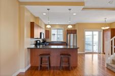 Welcome home to this bright and spacious townhouse—an ideal fit for families, first-time buyers, or anyone wanting room to spread out in a well-run community. You will love the warm feel of hardwood floors, ceiling fans, and a cozy gas fireplace, plus a kitchen designed for everyday living with a gas range, newer fridge, and extra cabinetry for storage.The layout is highly functional with four bathrooms total, including a generous primary suite with a large walk-in closet and 3-piece ensuite. Lower level features a media room, office or guest bedroom with four piece bath. Recent updates include newer laminate upstairs and newer stair carpeting, freshly painted throughout, making it move-in ready! Step outside to your fenced yard/garden area—great for BBQs (gas hookup!), pets, or relaxing outdoors. You’ll also appreciate the single garage with built-in shelving. Strata complex has recently had the roofs replaced. Call your realtor now to book your viewing!
