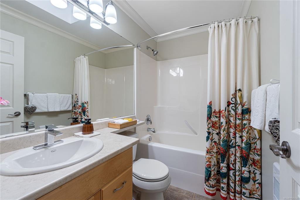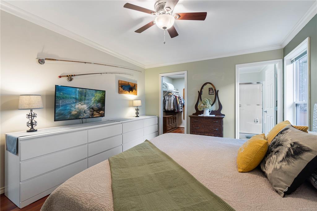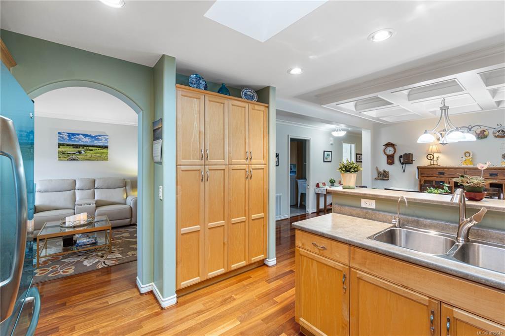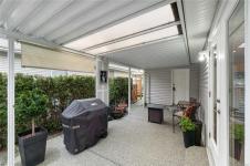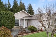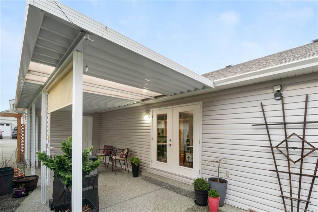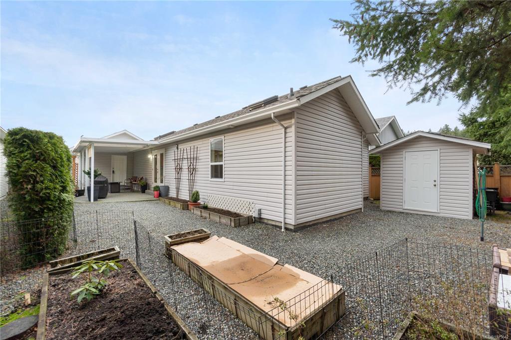 Welcome to effortless living in the sought-after gated community of Deerwood Estates. This immaculate 2-bedroom, 2-bath home is flooded with natural light from skylights and features gleaming hardwood floors, a cozy gas fireplace with custom built-ins, and a ductless heat pump for year-round comfort. The open layout flows into a spacious kitchen, complemented by a newer roof, a 2025 washer, and a newer dryer, move-in ready with peace of mind built in. Step outside to a beautifully maintained, fully fenced yard with a west-facing covered patio and sunshades, perfect for relaxing evenings. Backing onto the clubhouse yard, you’ll enjoy rare privacy with no neighbours behind. A custom shed/workshop with skylight adds flexible space, while the 1.5 car garage offers excellent storage. Deerwood Estates residents enjoy gated security, a welcoming clubhouse, and RV and boat storage,combining comfort, convenience, and community. Data & measurements approximate; buyer to verify if important.