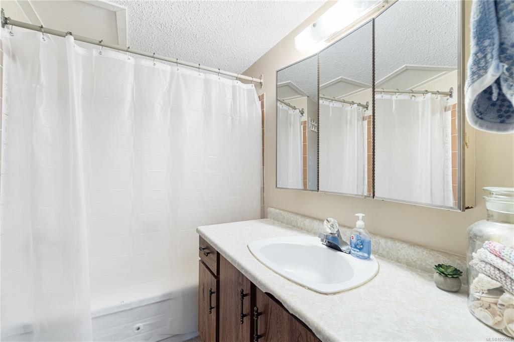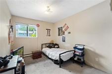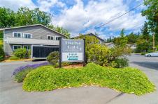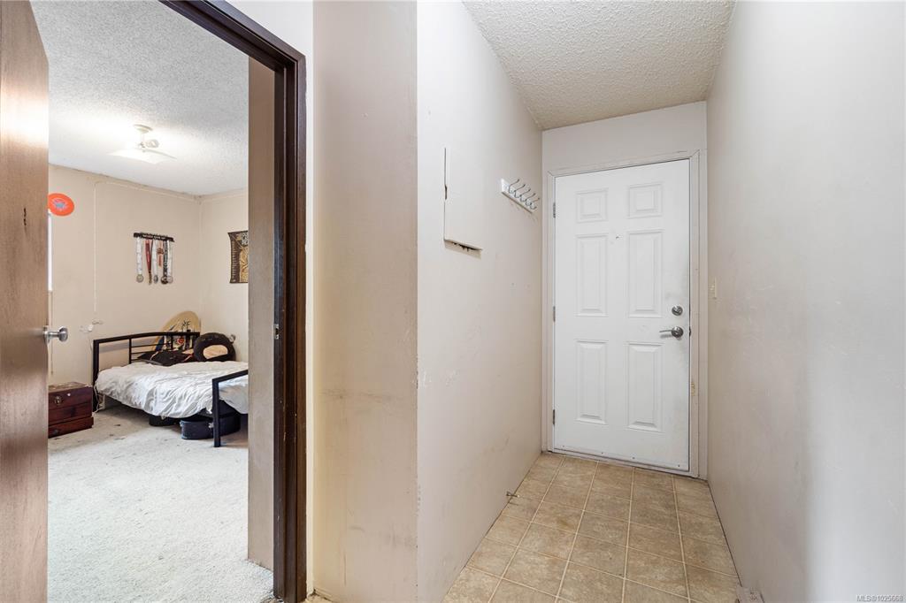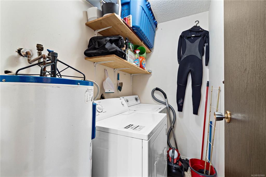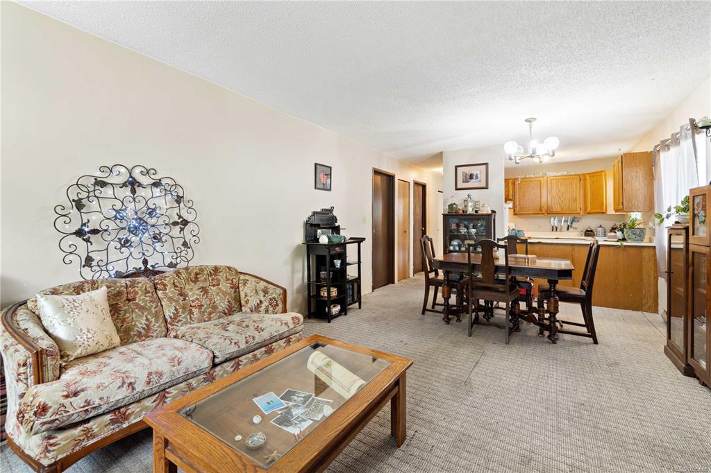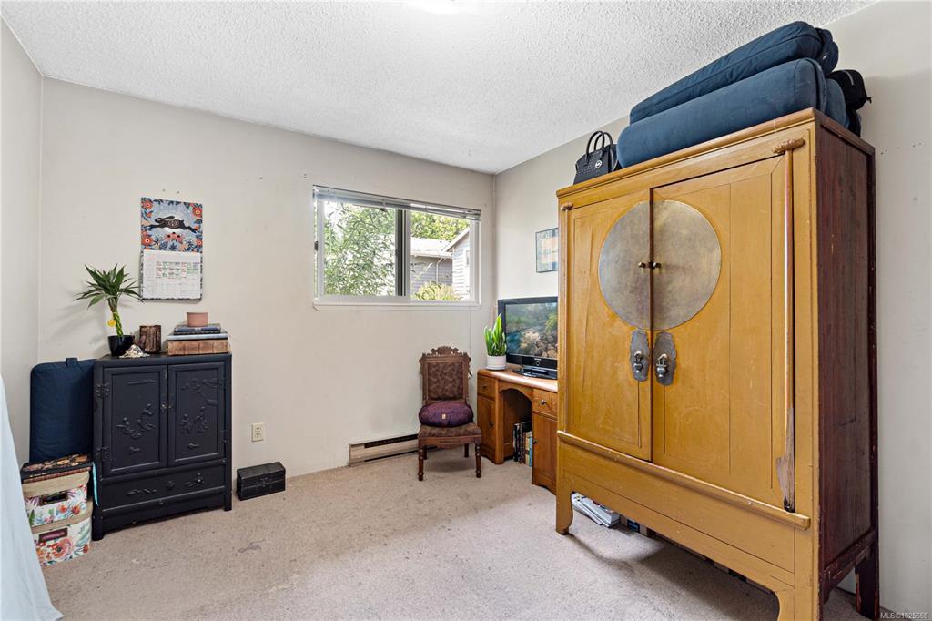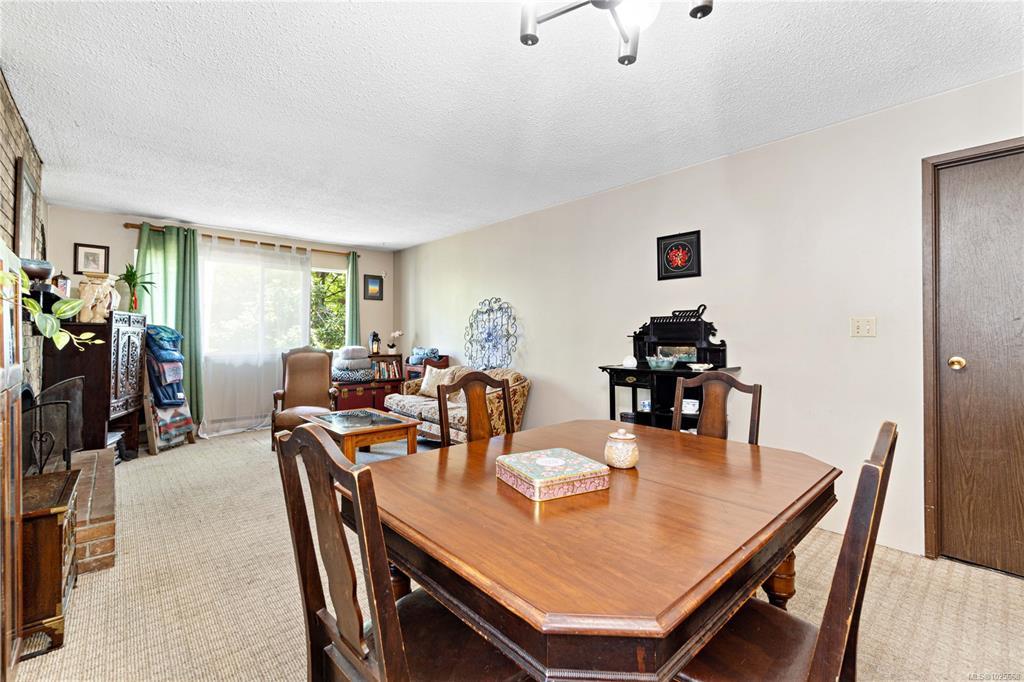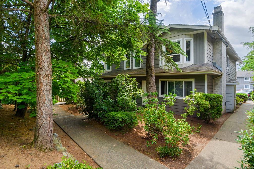 Incredible value and upside potential in this centrally located 2-bedroom unit at Twelve Oaks. Notable updates have already been done, including brand-new vinyl windows. The kitchen opens to a bright living and dining area with a cozy wood-burning fireplace. Both bedrooms are a good size, with the primary featuring a walk-through closet and cheater ensuite. The full laundry room adds extra storage. Ideally located on a main bus route and close to schools, shopping, Bowen Park, Buttertubs Marsh, and more. The complex allows rentals and welcomes one cat or small dog - making this a smart investment with plenty of future potential.