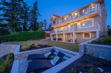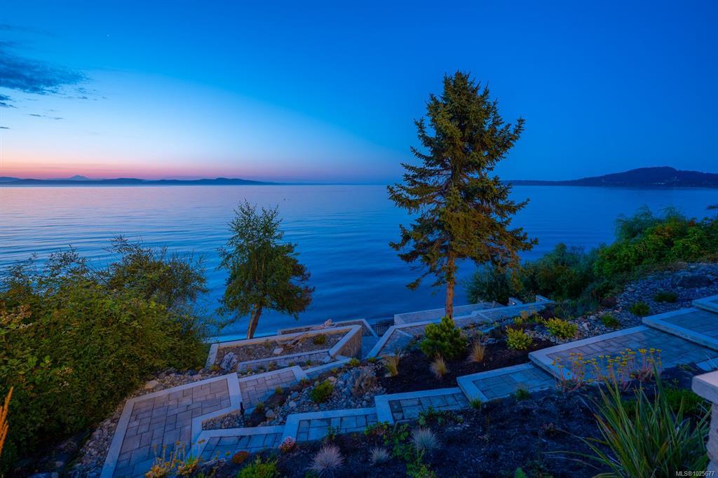 Embrace the pinnacle of coastal living in this breathtaking Cordova Bay waterfront residence with panoramic ocean and Mount Baker views. A dramatic two-story vaulted grand foyer welcomes you to a world of refined elegance, with rich edge grain fir details and an elevator connecting all three levels. The main floor is an entertainer's dream, boasting a gourmet kitchen with premium appliances and a stunning Calacatta quartz slab. Sliding French doors open to an expansive limestone deck with frameless glass railings and endless views. The upper-floor master suite is a private haven, featuring a cruise-ship style windowed wall and a lavish "his and her" ensuite spa. The lower level features a self-contained 2-bedroom suite, ideal for guests or as a premium rental. This is more than a home; it’s a lifestyle. To experience this extraordinary waterfront property, please contact us for a private viewing.