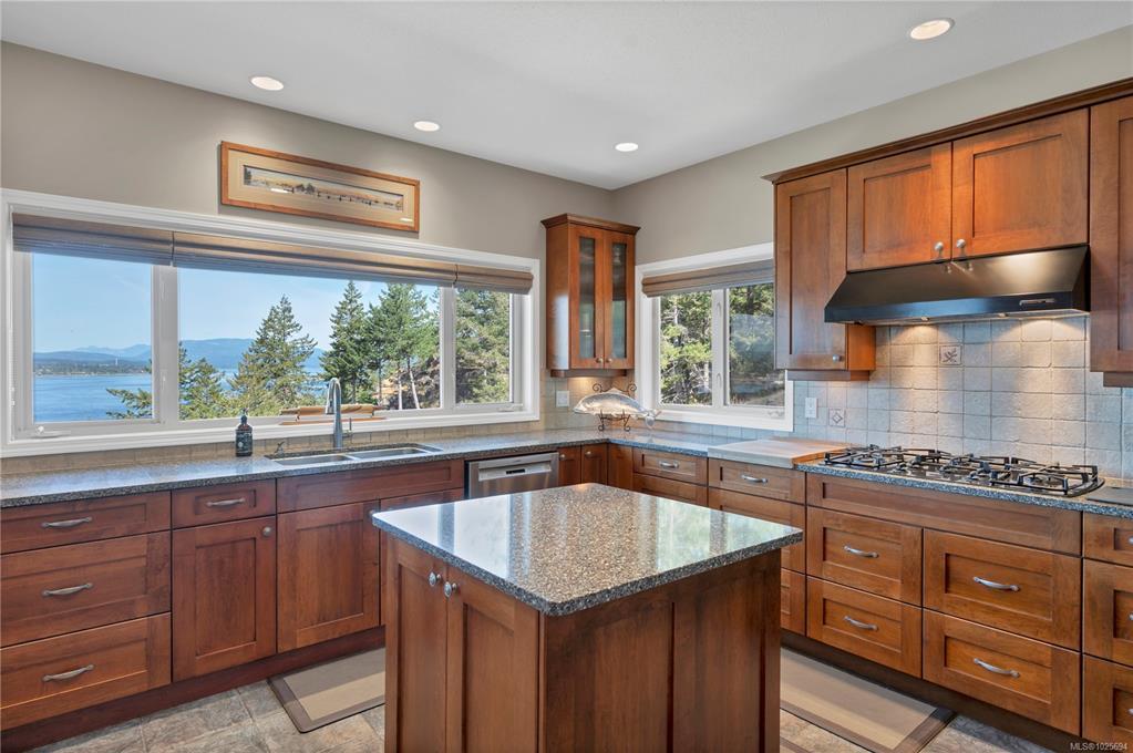 Phenomenal views across Discovery Passage from this Whiskey Point custom built executive home! Incredible main level entry home with daylight basement, originally built in 2002 by reputable builders from Campbell River. The current owners have done many updates including new stairs from shop to home, gazebo over back patio, new well pump, new septic tank with pump, new hot tub pump, to name a few. You’ll be wowed by the attention to detail & amazing ocean views from nearly every room of the home. The main level includes the gourmet kitchen with wall mounted oven, countertop range, large island & pantry & door to the outdoor kitchen. The primary bedroom features a walk-thru dressing room/closet & 4pc ensuite complete with ocean view soaker tub! On the lower floor you’ll find the family room, laundry room, den/office & guest bedroom. The 1.16 acre property features a low maintenance bluff landscape & boasts a nice mix of natural, ornamental & rock gardens.