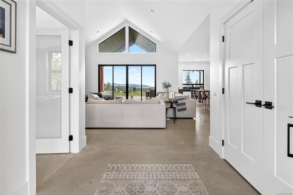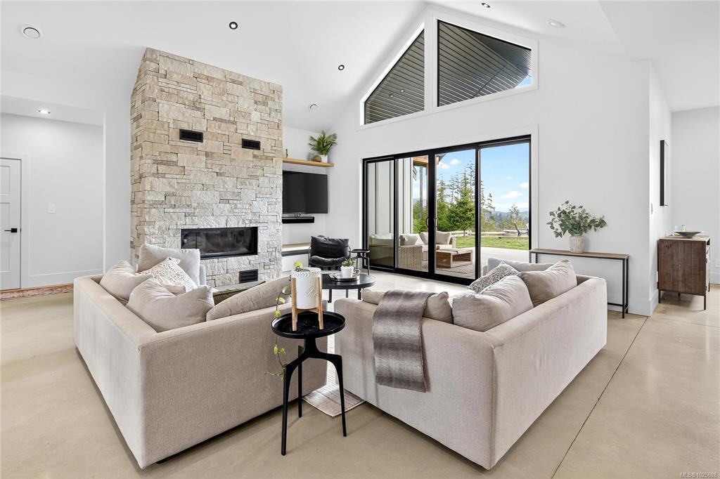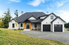 Builder’s Own West Coast Masterpiece! This stunning 3BD, 3BA + den rancher offering nearly 2,700sf of luxurious single-level living on a private 10-acre estate lot is ready for new ownership! Main living areas showcase sweeping views of the Sooke Hills, Secretary Island & Olympic Mountains beyond! Built with exceptional craftsmanship & modern West Coast flair, the contemporary-styled home features polished concrete floors (radiant heat ready), heat pump for efficient comfort & soaring vaulted ceilings with striking wood-burning FP. Designer kitchen boasts premium appliance package, entertainment-sized island & butlers pantry. Retreat to your generous primary bedroom with spa-inspired ensuite, WIC & direct laundry access. Upstairs, the 586sf self-contained 1BD/1BA legal suite is ideal for family, guests, or income. Oversized garage, detached shed, & ample parking for all the toys. Covered patio for year-round enjoyment. A rare combination of style, space & setting. This home has it all!