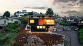 This newly completed contemporary residence on Kootenay Place captures sweeping views & seamless connection to nature, set directly beside Jennifer Park w/ a sun-filled living area that opens into the greenery beyond. With immediate possession & new home warranty, this turn-key home offers peace of mind. Every detail is thoughtfully executed, from the cedar & metal exterior accents to HW floors, AC, gas appliances & refined quartz finishes. The kitchen, bathrooms & custom millwork are crafted by Jason Good, bringing quality and sophistication to the home’s modern aesthetic. The primary suite is a serene retreat with a beautifully designed ensuite w/ walk-in shower. A bright lower-level suite provides flexibility for multigenerational living/added income. SS appliances, central vac & dedicated BBQ patio enhance everyday comfort & entertaining. Perfectly situated near schools, Cedar Hill golf, parks, amenities and shopping.