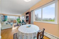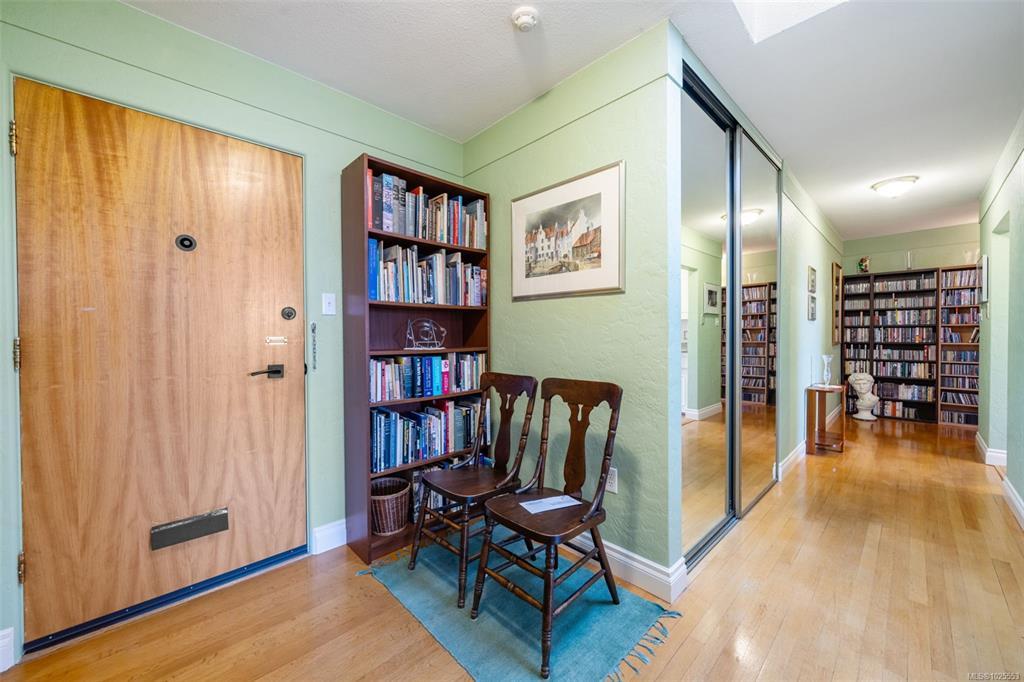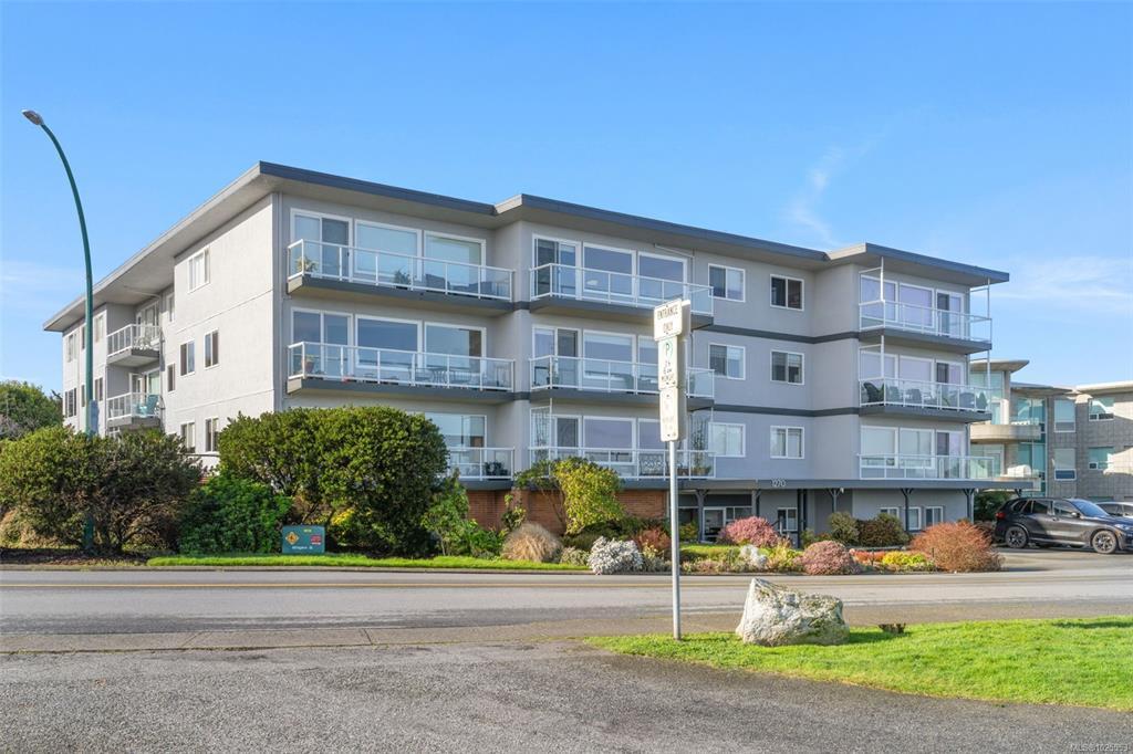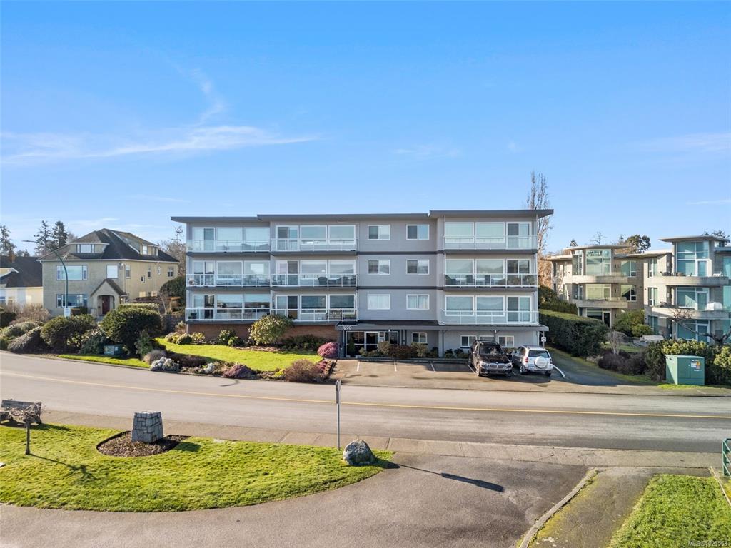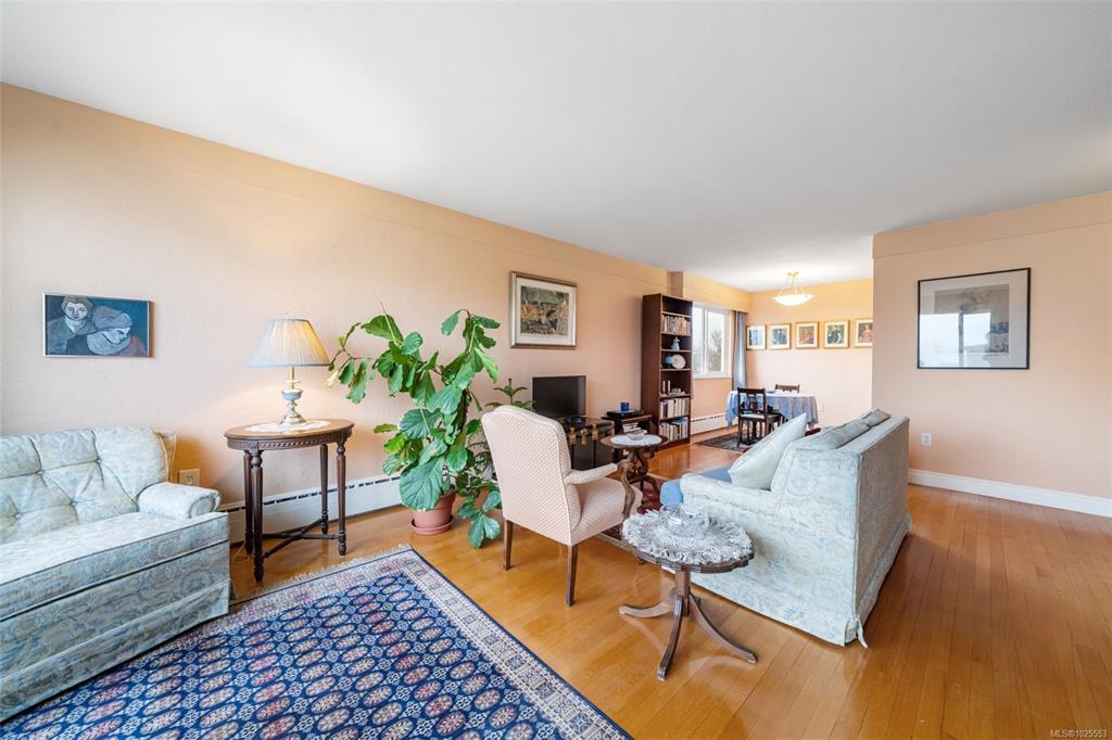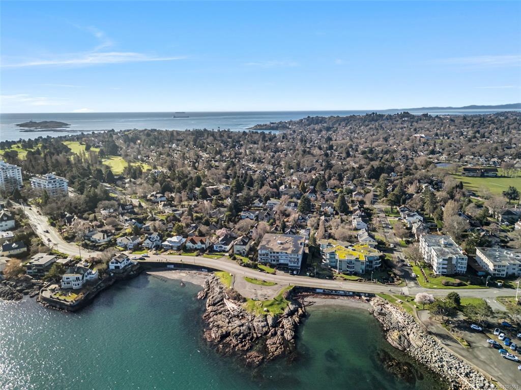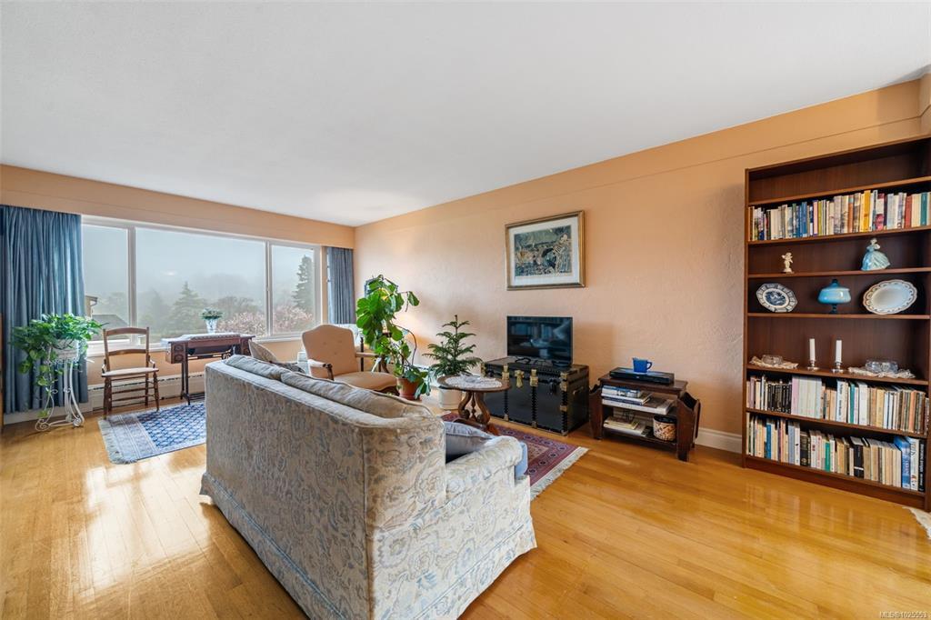 Located in a well-maintained building in the heart of South Oak Bay, this top-floor two-bedroom corner unit offers 1,020 square feet of bright, comfortable living space. Large windows and skylights bring in abundant natural light, complemented by hardwood floors and an open, airy layout. The unit offers ample storage, with large closets and a separate storage locker. The spacious living room features gorgeous ocean views. This is a sale of shares in Vista Towers with a lease to occupy, offering strong value with no property transfer tax, no vacancy tax, and a healthy reserve fund. Additional amenities include kayak storage, secure e-bike storage, and an exceptional location near Windsor Park, Oak Bay Marina, Willows Beach, and Oak Bay Village. An excellent opportunity in one of Victoria’s most sought-after neighbourhoods.