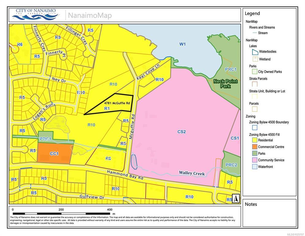 RARE OPPORTUNITY! 2.35 Acre Parcel with over 200 ft of frontage. INCREDIBLE LOCATION with REDEVELOPMENT POTENTIAL. Nestled on a quiet dead end street only a short walk to Keel Cove trails connecting to Neck Point Park and Sunset Beach. R1 zoning allows for 2 properties where you could build your dream estate home with cottage. The lot is also surrounded by R10 & R5 creating excellent potential for rezoning to multi-family. OCP: Suburban Neighbourhood - single-unit dwellings with/without secondary suites, Duplexes, Ground-oriented multi-unit dwellings including tri/fourplex, townhome, Up to 3 storeys. Buyer to verify redevelopment potential and measurements if important.