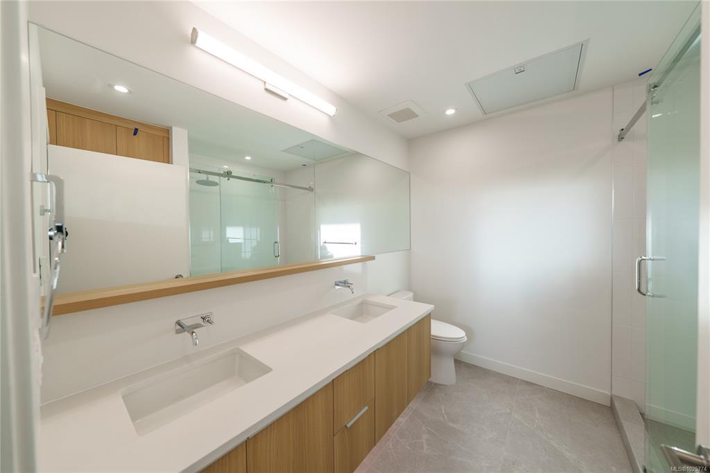 Welcome to Unit 206 at The Rise on Fifth, a stunning southwest corner home with full south-facing exposure and breathtaking OCEAN views. This expansive 2-bedroom residence offers a bright, open-concept layout with an abundance of natural light. The beautifully designed kitchen is a standout feature, boasting quartz waterfall countertops, a built-in Fisher & Paykel appliance package, and ample storage—perfect for cooking and entertaining. The spacious living area provides a seamless indoor-outdoor flow, ideal for enjoying the coastal scenery. Luxurious spa-inspired bathrooms include floating vanities, tiled walk-in showers, and a deep soaker tub. Additional features include energy-efficient heating and cooling, home automation, underground Klaus parking, storage lockers, bicycle storage, and a pet washing area. Relax on the rooftop patio with panoramic Haro Strait views or explore Sidney’s charming downtown, just steps away.