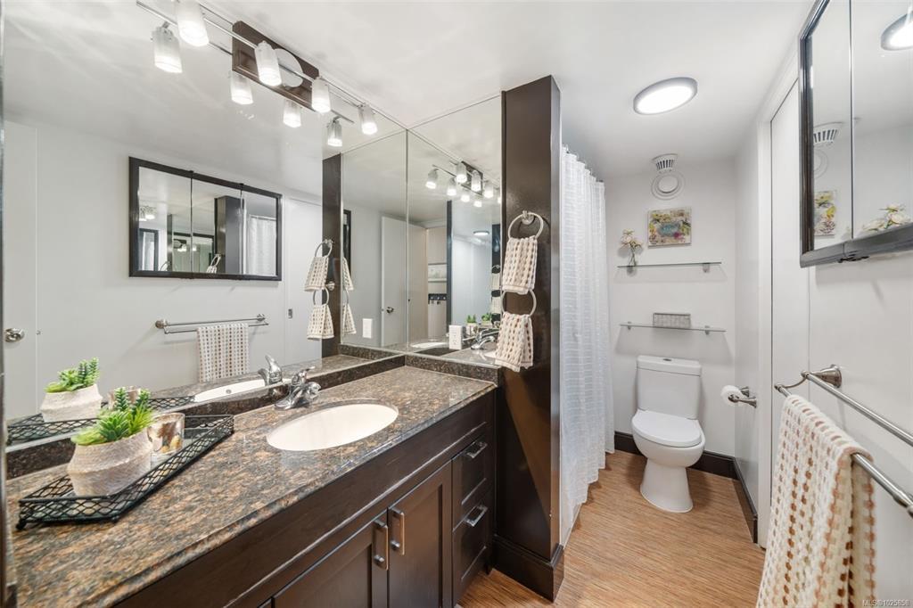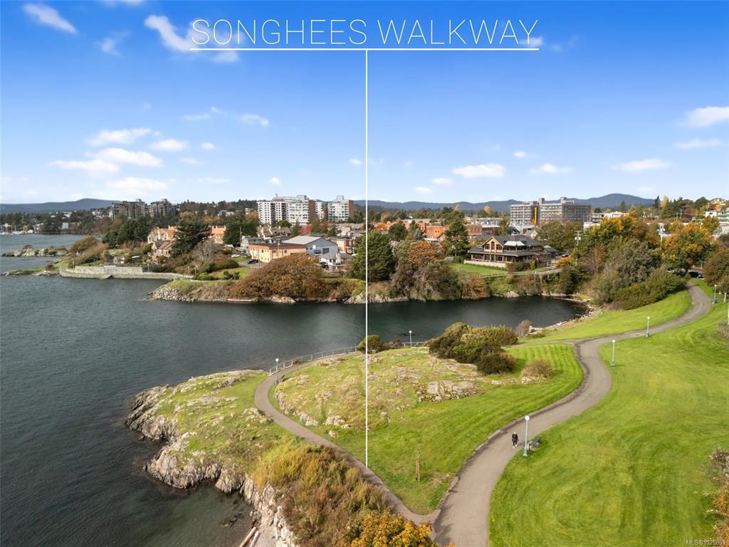 **OPEN HOUSE** Sat, Feb 14 (1:00-2:30) and Feb 15 (2:00-3:30) - Wake up to breathtaking sunrises! Enjoy your morning coffee in the balcony of this south-east facing condo. You are gifted beautiful views of the Inner Harbour, Laurel Point, the Olympic Mountains and the Ocean. This unit offers two spacious bedrooms and tastefully renovated kitchen and bathroom. With a Walk Score of 85, you're only minutes away from parks, groceries, shops and all kinds of restaurants in the area. Across the street is the scenic Songhees waterfront walkway! Walk to Spinnakers Brewpub, Boom+Batten, or the Westbay Marine. This location is minutes from downtown Victoria by car, bus, or bike; and a direct bus ride to UVic or Tillicum Mall, offering the perfect blend of tranquility and convenience. Bring your beloved pet too! This building is pet friendly :). Amenities include secure underground parking (EV roughed-in), storage unit, kayak/canoe storage, fitness room, workshop, carwash station and rec rooms.