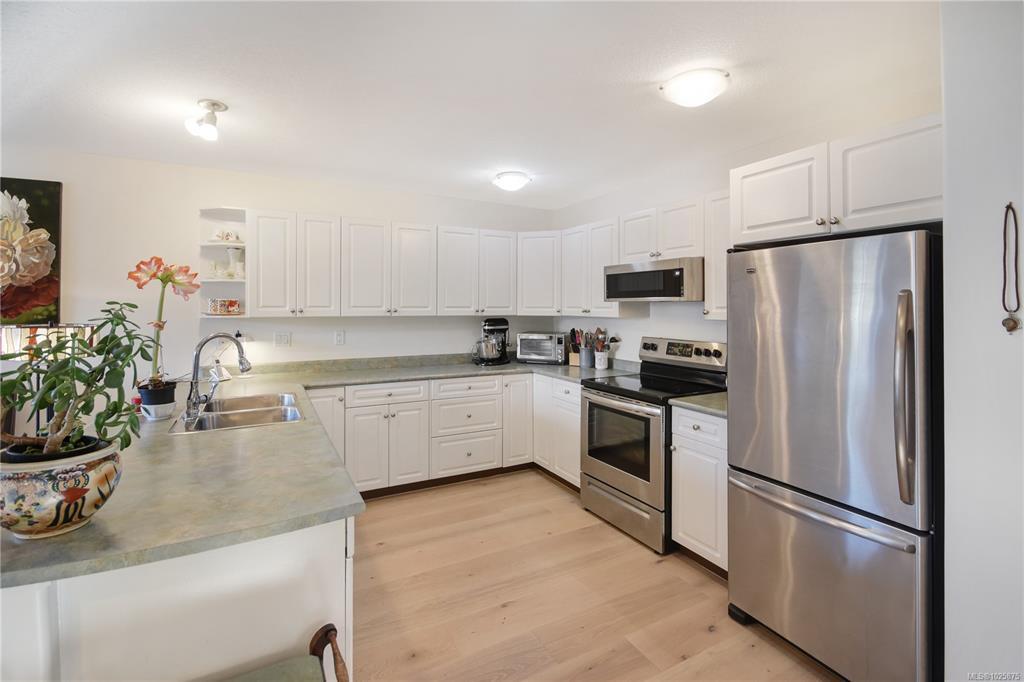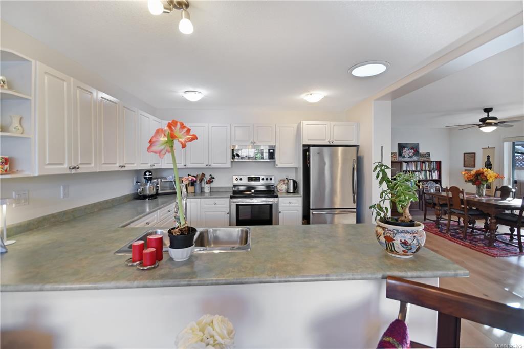 Welcome to the nicest park in Nanaimo - Deerwood. This beautifully updated 2-bed, 2-bath open-concept home offers comfort & peace of mind with extensive upgrades - all completed in 2025. The home has been painted & features stunning new engineered hardwood floors throughout. A sun-tube in the dining area fills the space with natural light, adding to the inviting atmosphere. Updates include a brand-new roof, furnace, and heat pump — all completed in 2025. Simply move in and enjoy. Outside, you’ll find a private, fully fenced backyard. Beautiful landscaping showcases an abundance of vibrant dahlias, while two gardening sheds offer excellent storage for tools and hobbies. The covered outdoor sitting area with roll-down sunshades allows you to relax comfortably in any weather. Includes a single-car garage plus a large, level parking apron for guests. Great opportunity to own a meticulously updated home offering lifestyle, privacy, and exceptional value.