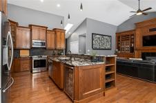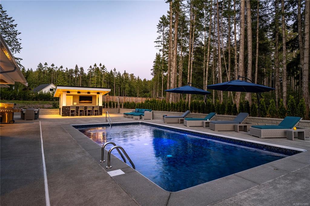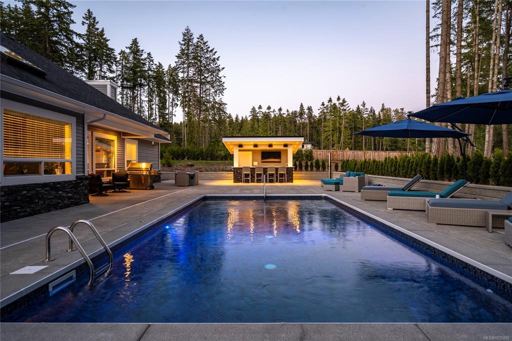 3 bedroom + den, custom chef's kitchen, granite counters, SS appliances, huge island with breakfast bar, all in open concept home with soaring ceilings. Beautiful indoor outdoor living full bar, sound system, salt water pool with solar heating RV pad is fully serviced. Heated shop has 4 overhead doors, over 1000 sq ft of mezzanine for unlimited storage, 200 amp service and 4 piece bath. This home is turn key, fully fenced and secure.