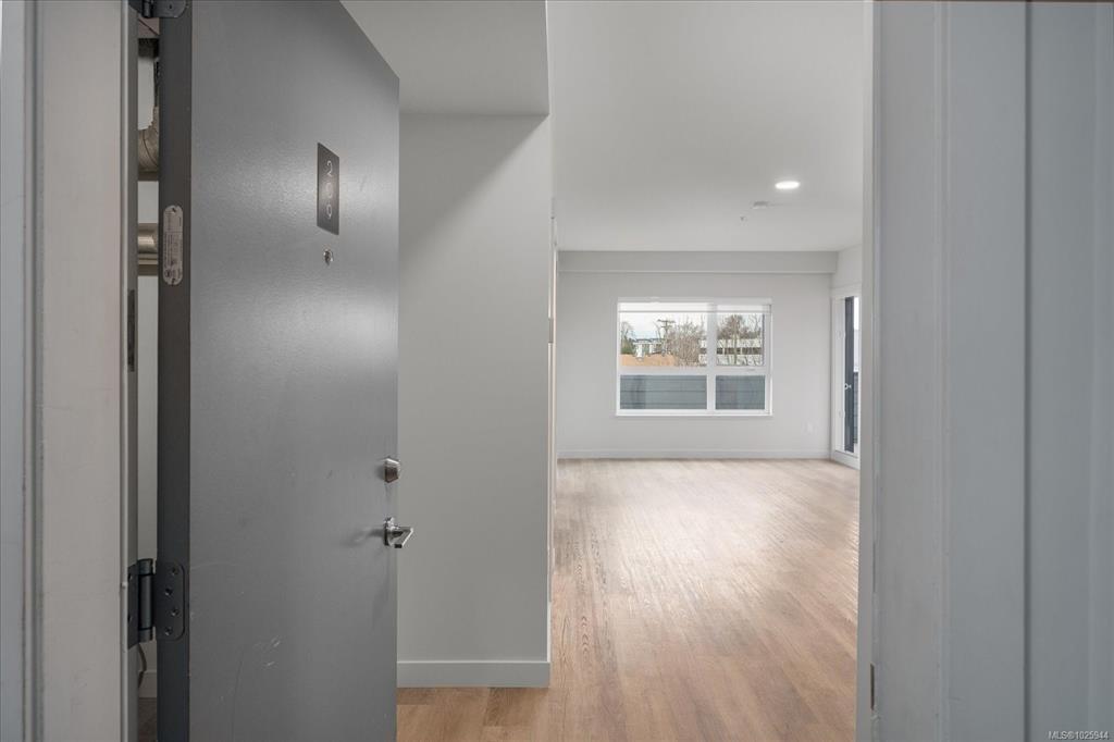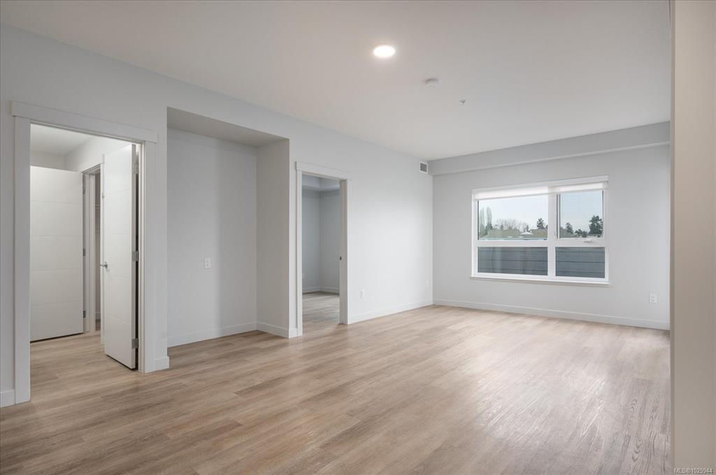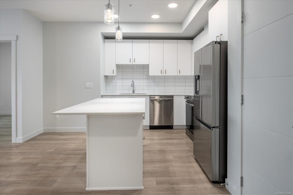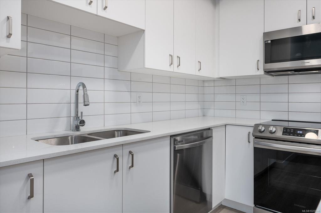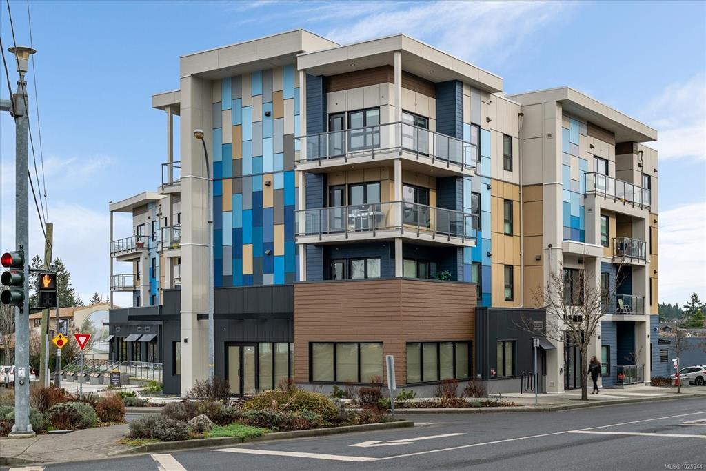 This second floor condo features luxury vinyl plank flooring, quartz countertops, soft-close cabinetry, LED lighting, triple pane windows, heat pump for heating and cooling, and energy recovery ventilation for year round comfort. The open concept floor plan features a spacious primary bedroom with ensuite, a second bedroom featuring a dual entry bathroom, a private balcony with ocean and mountain views. Included is one secured underground parking stall with EV charging, additional storage, secured bike storage, and secured entry. Pet-friendly. Ideally located steps to amenities and a short walk to one of Vancouver Island’s best beaches. Parks, summer festivals, libraries, restaurants, groceries and daily conveniences are all nearby. GST is not applicable.