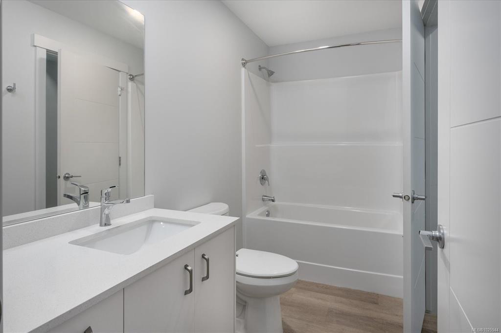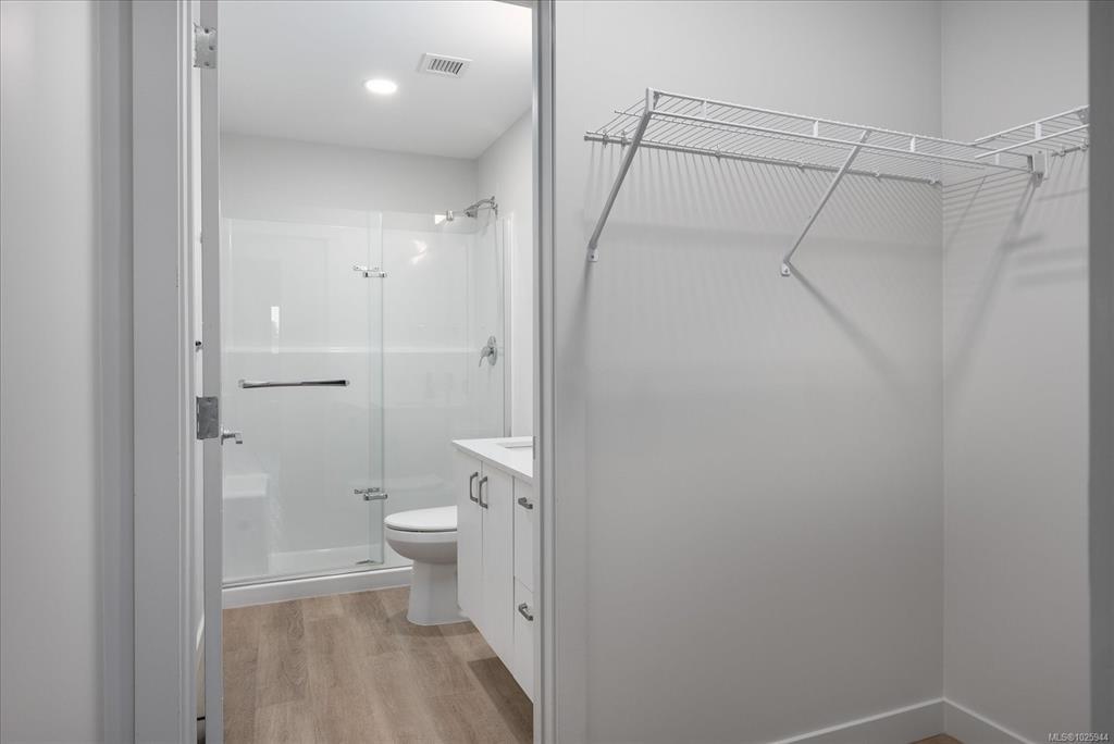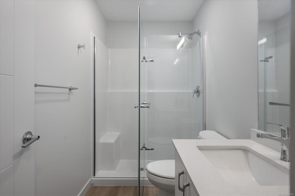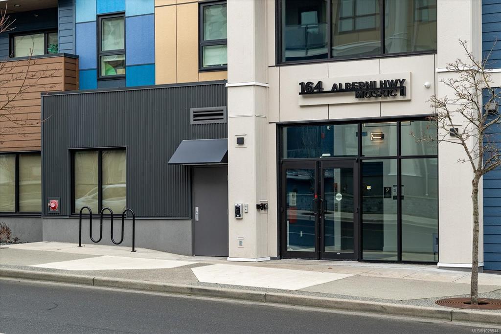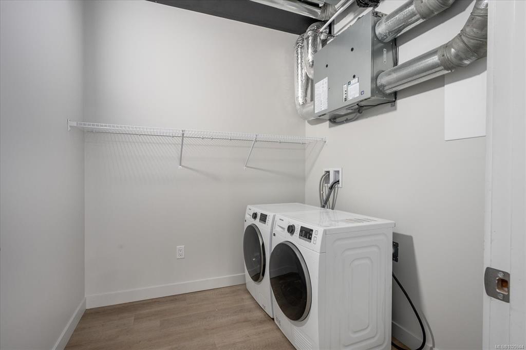 This second floor condo features luxury vinyl plank flooring, quartz countertops, soft-close cabinetry, LED lighting, triple pane windows, heat pump for heating and cooling, and energy recovery ventilation for year round comfort. The open concept floor plan features a spacious primary bedroom with ensuite, a second bedroom featuring a dual entry bathroom, a private balcony with ocean and mountain views. Included is one secured underground parking stall with EV charging, additional storage, secured bike storage, and secured entry. Pet-friendly. Ideally located steps to amenities and a short walk to one of Vancouver Island’s best beaches. Parks, summer festivals, libraries, restaurants, groceries and daily conveniences are all nearby. GST is not applicable.
