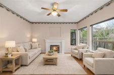 Discover the perfect blend of comfort and convenience in this QUIET, ONE-LEVEL RANCHER TOWNHOUSE located in the heart of Royal Oak. With 1519 sqft of inviting living space, this home features a cozy FAMILY ROOM WITH GAS FIREPLACE adjacent to an UPDATED KITCHEN with EATING BAR. The versatile layout offers 3 bedrooms and 2 bathrooms, highlighted by a SPACIOUS PRIMARY SUITE complete with a WALK-IN CLOSET and a LUXURIOUS 5-PIECE ENSUITE with 2 sinks, walk-in shower and soaker tub. The 3rd bedroom is perfectly positioned near the entrance, making it an ideal HOME OFFICE or DEN. Step outside to enjoy your PRIVATE BACKYARD PATIO, a serene retreat surrounded by mature landscaping. Complete with a DOUBLE GARAGE, this home offers incredible access to ROYAL OAK VILLAGE AMENITIES, COMMONWEALTH POOL, ELK LAKE, and major bus routes. Pet-friendly (1 dog/cat <35lbs). BOOK A SHOWING TODAY!