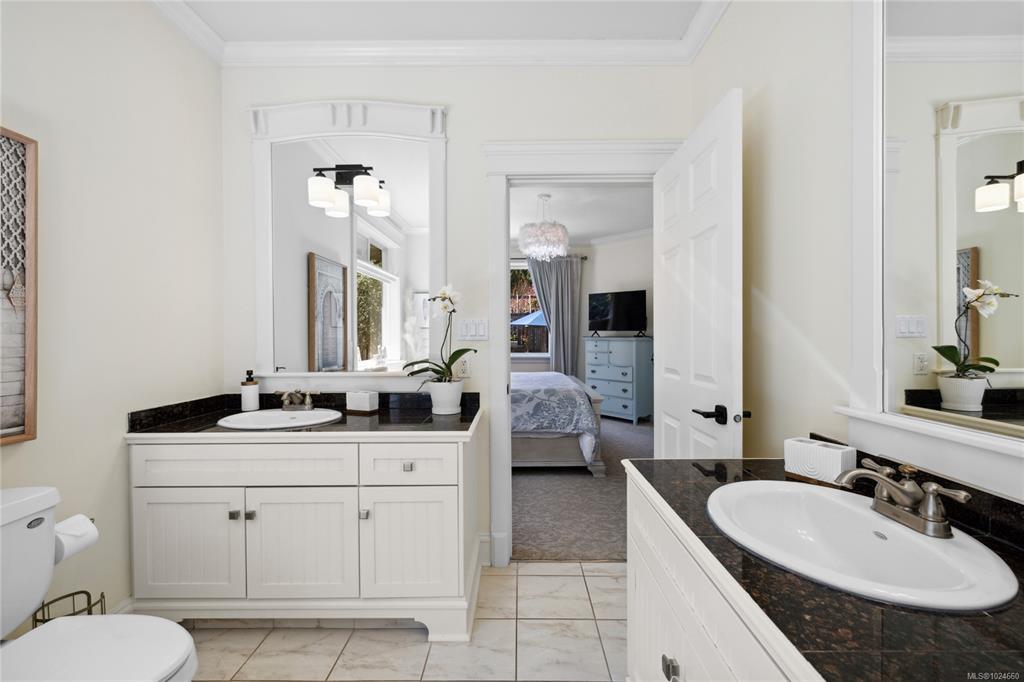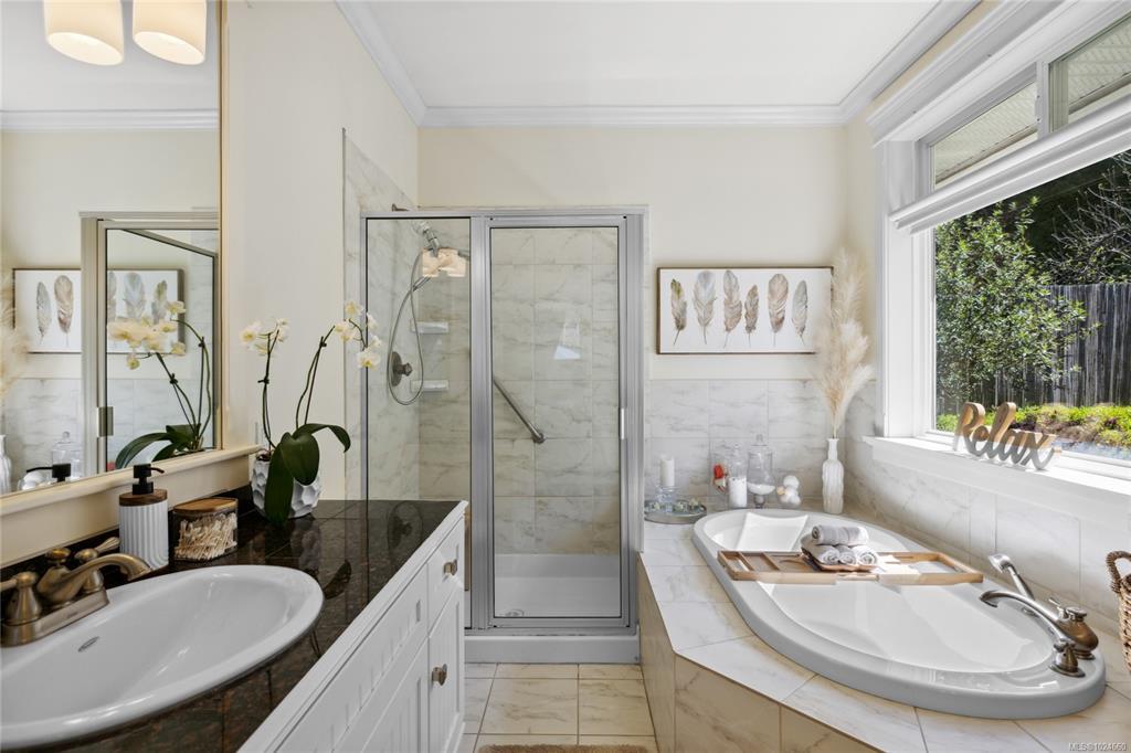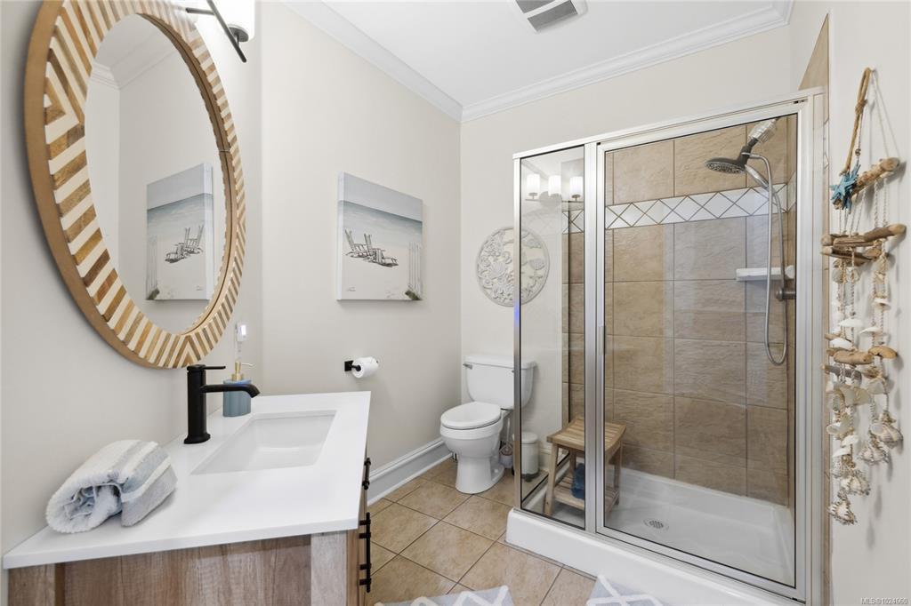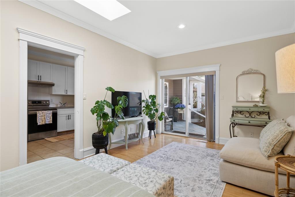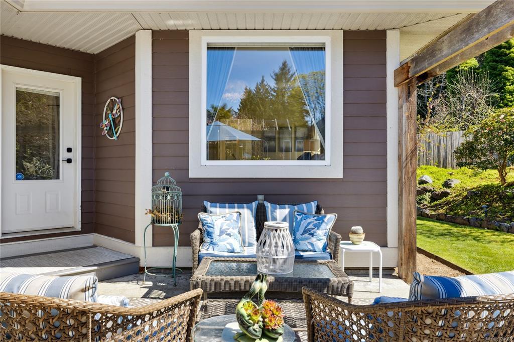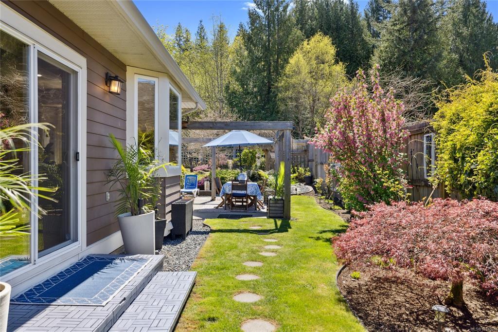FLAWLESS ELEGANT RANCHER – Your Private Garden Retreat by the Sea. Just a short stroll to Nuttall Bay for swimming and kayaking, with scenic trails leading to Moorcroft Regional Park, this 2005 built home is impeccably maintained and rich in pride of ownership. Bright and airy with 9’ ceilings and refined finishes create an inviting home, while the sophisticated culinary kitchen with walk in pantry anchors the heart of the home. A self contained in-law suite with separate entrance offers ideal flexibility for guests, extended family or a home based business. The spacious primary suite features a spa like ensuite, walk in closet, and serene views of the sun drenched south facing garden. Outside, discover an oasis with fruit trees (Apple/Pear, Cherry, Nectarine, Peach), 14 rose varieties, lilac, pink dogwood, and butterfly bush. Bareland strata purely for the common septic - just $33/month, offers worry free maintenance. Welcome home! Coastal luxury awaits.