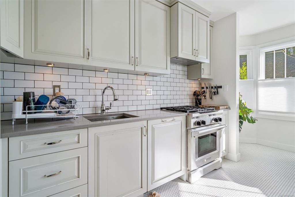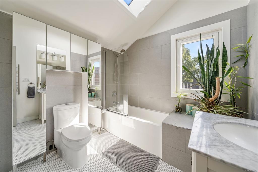 Extensively renovated in a prime location near downtown, the Inner Harbour, and Cook Street Village, this home offers the perfect blend of classic character and modern comfort. The stunning gourmet kitchen features high-end stainless steel appliances, a charming bay window breakfast nook, and flows beautifully into the dining and living areas—ideal for entertaining. Enjoy 9-ft ceilings, wide plank wood floors, a cozy gas fireplace, and energy-efficient heat pump. The luxurious primary suite boasts a spa-like bath with heated floors, towel rails, and a large skylight. Downstairs, a brand-new lower level provides flexible space for family or income-generating short-term rentals. Outside, unwind in the fenced yard with a hot tub, and take advantage of the new 2-car driveway with EV charger, updated 200-amp electrical with 60-amp sub panel, plumbing, storm drains, and low-maintenance landscaping.