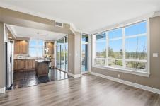 Breathtaking ocean views await at Marine Vista, one of Nanaimo’s most prestigious residences. This refined 1500+ sqft 2-bedroom plus den, 2-bath home offers stunning views of Nanaimo’s downtown harbour, marina, ocean, and North Shore mountains from THREE private decks. High ceilings and expansive windows fill the space with light, showcasing engineered hardwood floors, slate tile entry, and granite countertops. The chef-inspired kitchen features stainless steel appliances, solid wood cabinetry, and generous counter space. The primary suite boasts a private deck and spa-like ensuite with double sinks, separate shower, and soaker tub. An additional bedroom adds flexibility with the bonus of a 3rd south facing deck - only unit in complex with this benefit! Enjoy fresh paint, an individual HVAC system, gas fireplace, underground parking and a storage locker. Just steps to the seawall and minutes to downtown and Departure Bay - this location is unbeatable! All info approx.