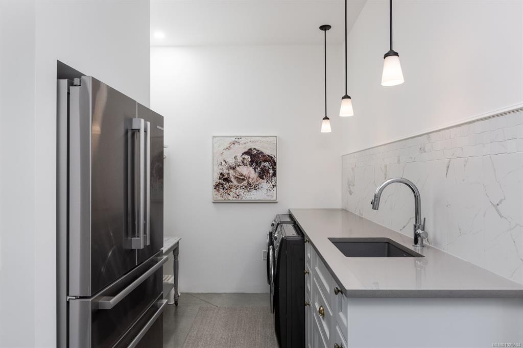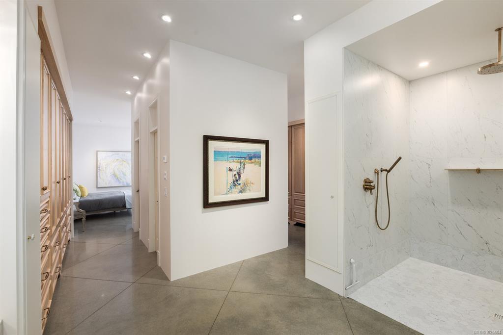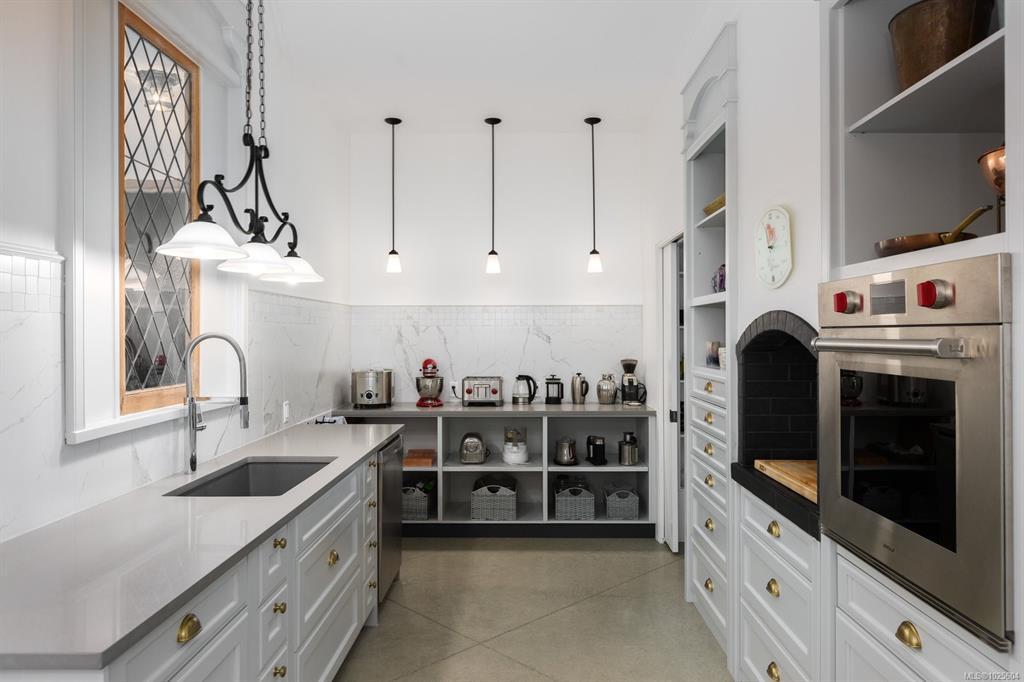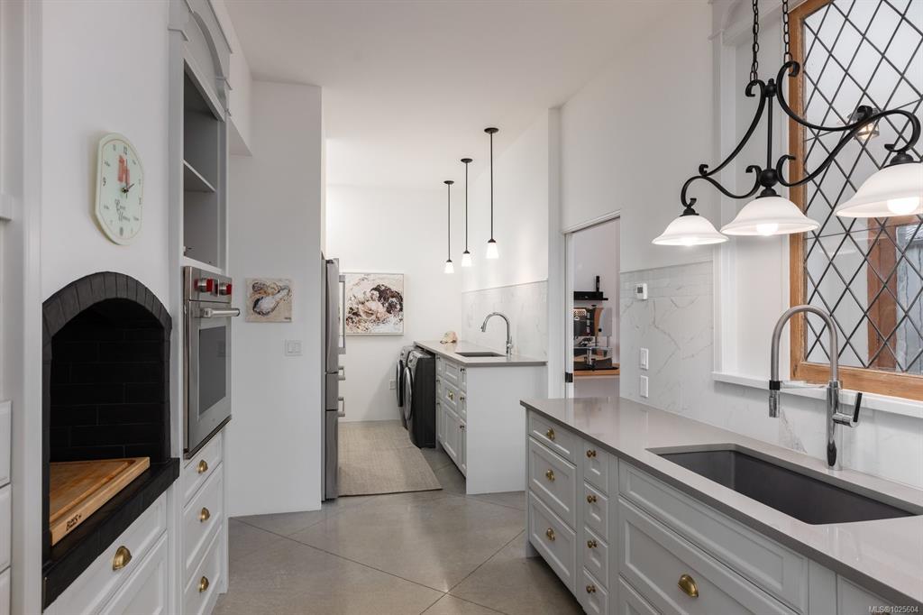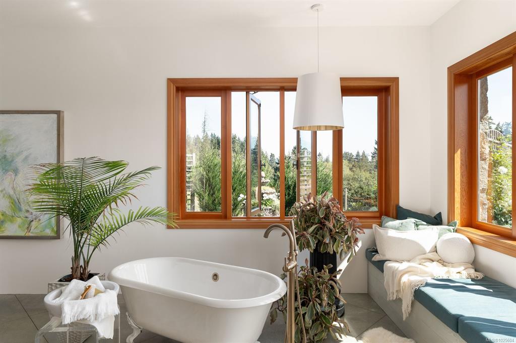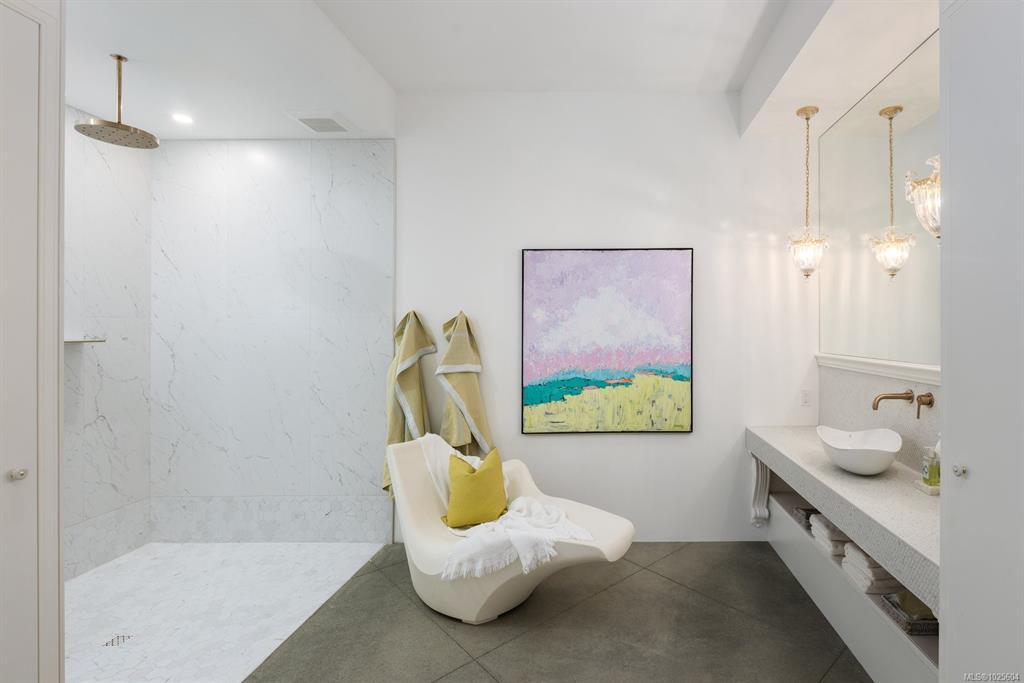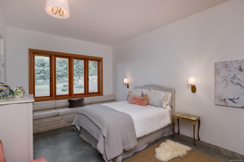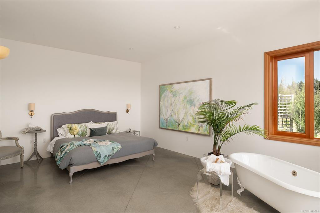 Nestled on 2.4 acres of gently rolling hillside, this exceptional Metchosin estate features a 4,000+ sq.ft. Rancher & 1,380 sq.ft. detached building with an art studio, bathroom, workshop & garage. The exterior reflects French provincial elegance, with a granite façade, wrought iron detailing & a concrete water feature signaling the craftsmanship inside. Inside, polished concrete floors, exposed beams, reclaimed brick accents, and inlaid wood detailing create an inviting, artistic atmosphere rarely seen in modern construction. The expansive great room centers on a bespoke fireplace & opens to the patio through multiple custom French doors. The kitchen includes a dedicated prep area for added convenience. The primary suite offers a serene, private retreat. Geothermal heating enhances efficiency and lowers the home’s carbon footprint. The property captures sweeping views across Haro Strait to the Olympic Mountains, providing a dramatic & inspiring backdrop to this one-of-a-kind estate.