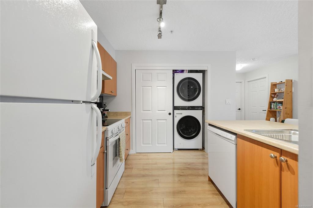 Bright and beautifully maintained condo in the sought-after Wale Cove community. This unit offers a thoughtful, well designed layout filled with natural light throughout. The sunny kitchen and living area open onto a generously sized balcony, container gardening, or unwinding outdoors. Both bedrooms are spacious and inviting, featuring large closets, peaceful garden views, and oversized windows that create a bright, calming atmosphere. With three unshared walls, the home feels notably private and quiet. Pride of ownership is evident throughout, with the unit kept exceptionally tidy and well cared for over the years. Ample storage, in-suite laundry area, and a highly functional layout make everyday living easy and comfortable. A separate storage locker and secure parking are included. Centrally located in Colwood, close to major amenities, parks, recreation centres, Esquimalt Lagoon, Royal Roads University, and more. This is a move-in-ready unit in a fantastic location.