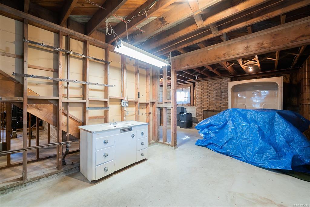 This remarkable family home emanates character and quality; set in the heart of South Nanaimo and was built for this family. With 1465sf on the main level, 1498sf of unfinished space on the lower level, and a 822sf detached shop with alley access. A 20'x12'8 living room and dining room feature vintage cove and plaster ceilings and walls, in pristine condition, reflecting the quality workmanship. A traditional main level plan with updated kitchen, mudroom and door to the rear covered deck and yard, 3 bedrooms and 2 bathrooms, stairs with wrought-iron rail to the basement. This lower level awaits your ideas. A rough-in bathroom and separate access, perfect for a growing family and a legal suite. A cold room, gas furnace, ample storage, and 150 amp panel will add to your plans. The level lot leads to both a 822sf detached shop. Alley access to the shop + R5 zoning, add potential for a carriage home. All measurements are approximate and should be verified if important.