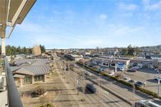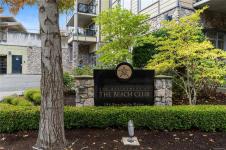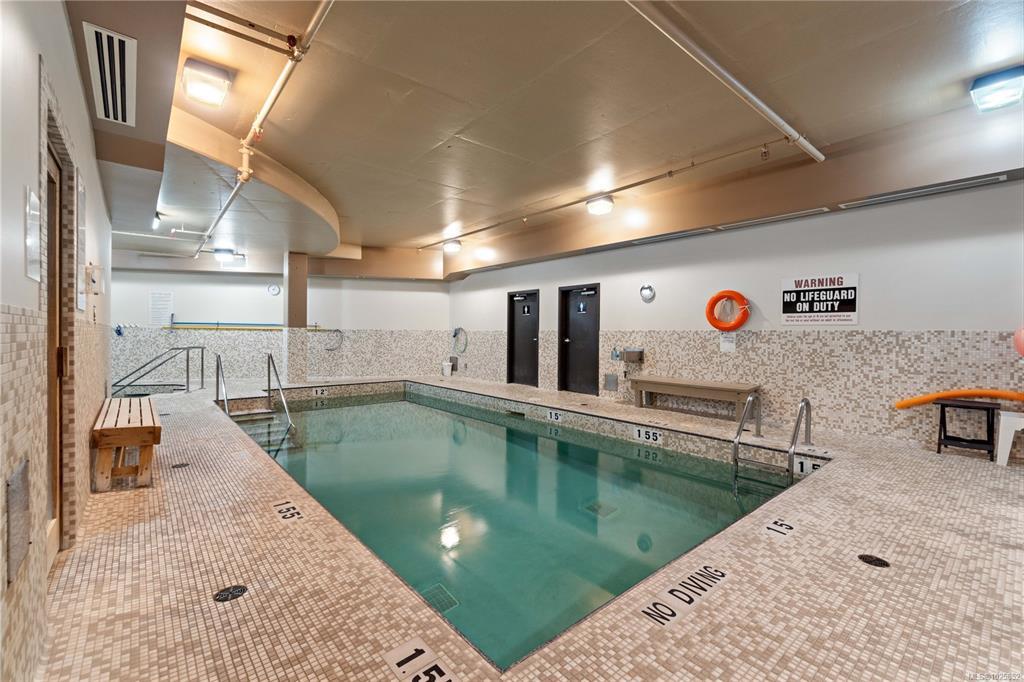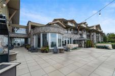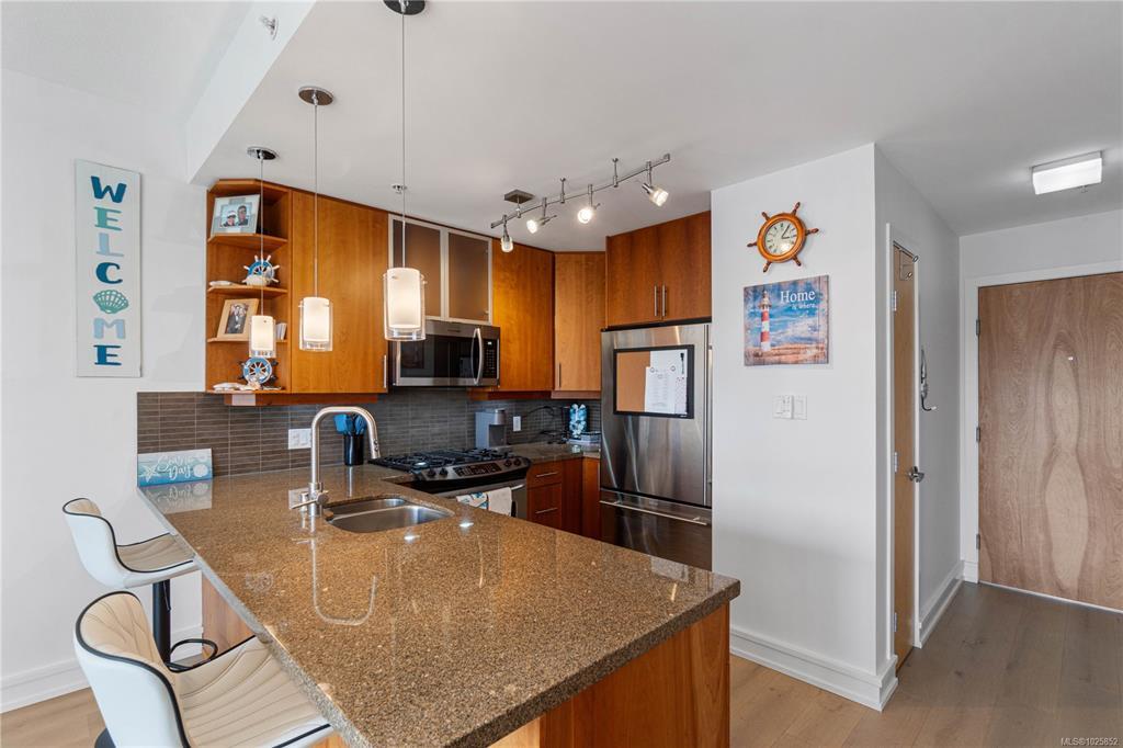 Designed for comfort and style, this sophisticated 6th floor home showcases sweeping mountain views and sun-filled southern exposure, enjoyed from expansive windows and a spacious private balcony. The thoughtfully designed layout features a generous bedroom complete with walk-in closet and direct balcony access. The kitchen and bathroom are appointed with polished granite countertops, while engineered hardwood flooring flows through the entry, kitchen, and living areas. The bathroom offers in-floor radiant heating for added everyday luxury. With 9-foot ceilings, a cozy gas fireplace, and a convenient gas BBQ hookup on the balcony, this home perfectly blends elegance and practicality. Residents enjoy exclusive access to premium amenities, including a fully equipped gym, indoor pool, hot tub, and sauna. Just steps from the beach and within easy walking distance to shops and restaurants, this concrete and steel building offers an unbeatable combination of luxury, location, and lifestyle.