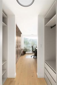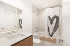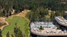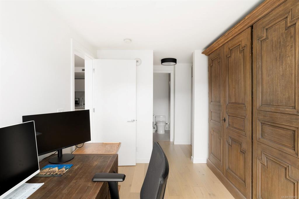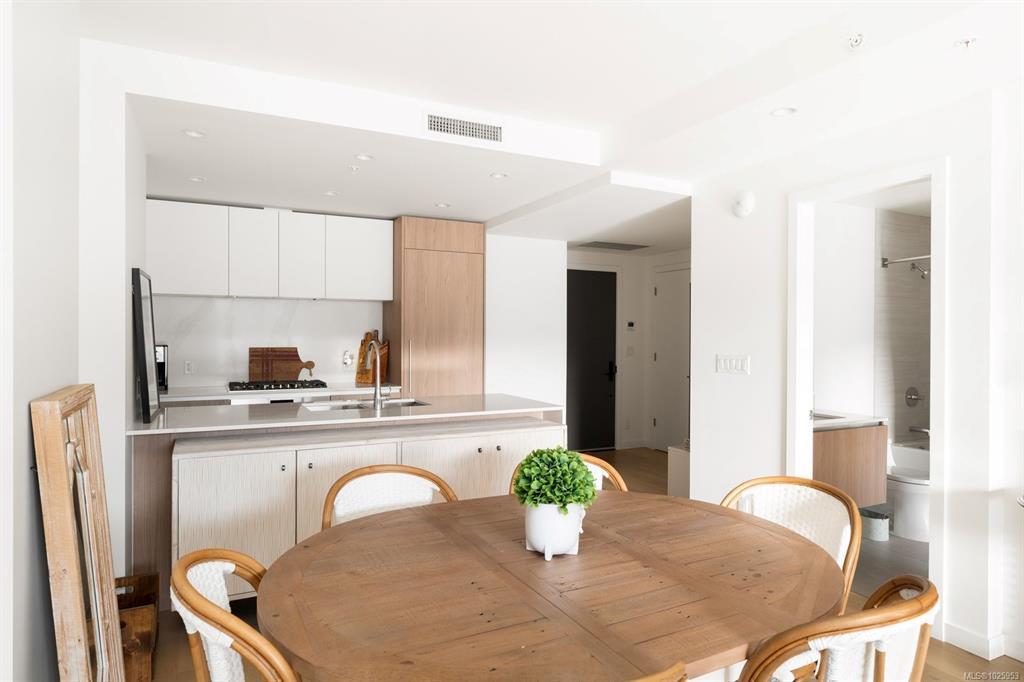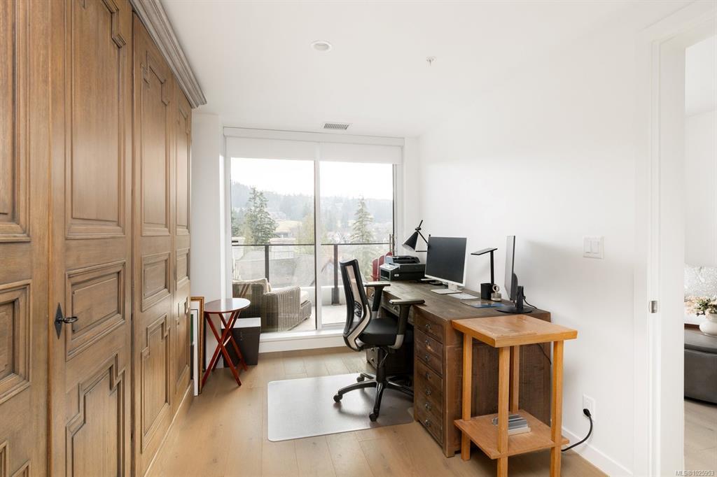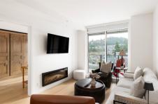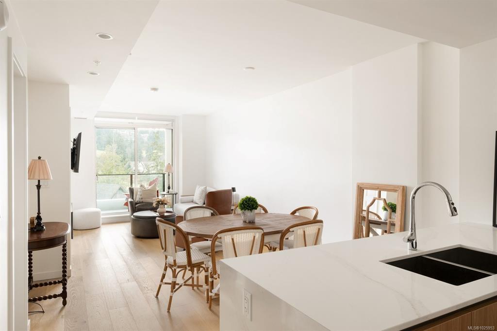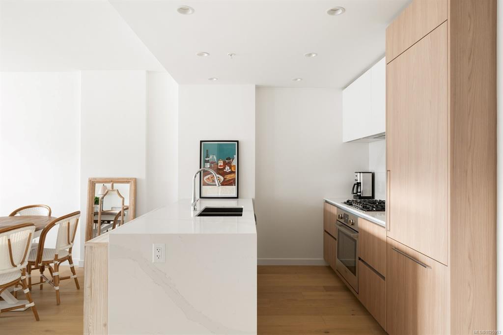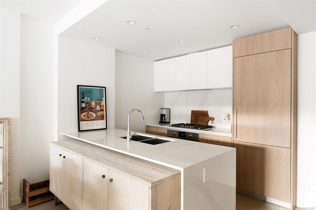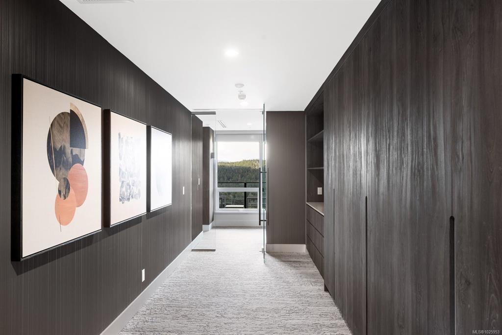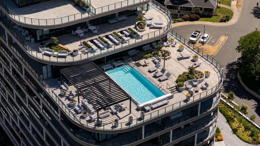 Experience elevated living at One Bear Mountain, an amenity-rich residence where contemporary luxury meets West Coast tranquility.Perched on the 13th floor,this bright west-facing 2 bed/1 bath residence offers oak flooring, 9-ft ceilings,and dramatic floor-to-ceiling windows capturing sweeping southwest views over the 18th fairway and Mt. Finlayson.The gourmet kitchen is beautifully appointed with Bosch appliances, quartz countertops,an underlit sit up island and sleek Italian cabinetry.The sunlit open-concept living and dining area is anchored by a fireplace and steps out onto the spacious patio with BBQ hookup to entertain against a breathtaking golf course backdrop.The primary bedroom offers patio access, a walk through closet and 4 piece ensuite. Residents enjoy the 16th-floor Grenoble Sky Lounge,fitness and yoga studio,outdoor pool, sundeck,and Business Centre. Complete with secure parking,storage locker, bike room,and dog wash station,this home delivers refined,effortless luxury.