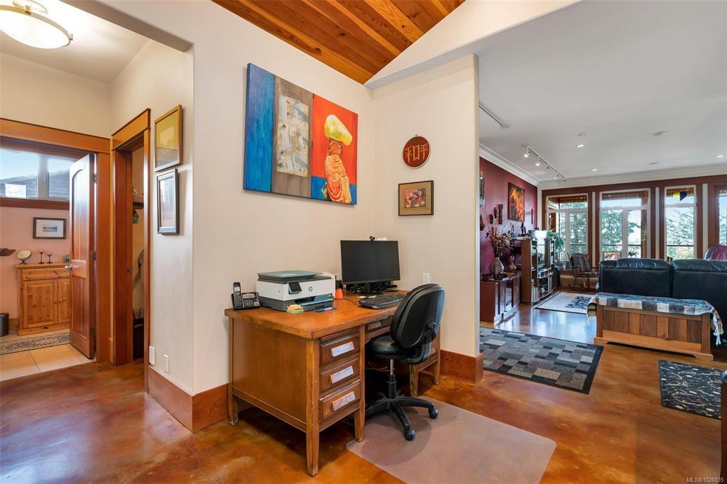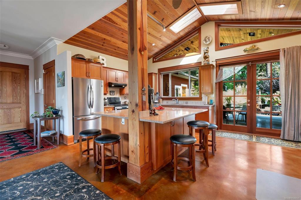 Thoughtfully designed and beautifully crafted, this exceptional custom home offers over 4,400 finished sq. ft. in a picturesque Shawnigan Lake setting. With 3 bedrooms and 4 baths, the main level impresses with soaring 9’6” ceilings, a vaulted kitchen, and striking acid-etched concrete floors. Western exposure provides beautiful lake views and stunning sunsets. Radiant in-floor heating on both the main and lower levels provides year-round comfort. Much of the interior woodwork was milled from trees on the property, lending warmth and authenticity throughout. Outdoors, the fully deer-fenced yard is a gardener’s haven, complete with raised beds, irrigation, and all benefiting from years of chemical-free gardening practices. The distinctive split garage offers versatility, while French slate accents the bathrooms and lower level. Ideally positioned above Old Mill Park in a sought-after neighbourhood, just moments to beaches and lakeside trails. Includes a charming 395 sq ft cottage.