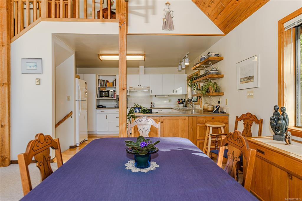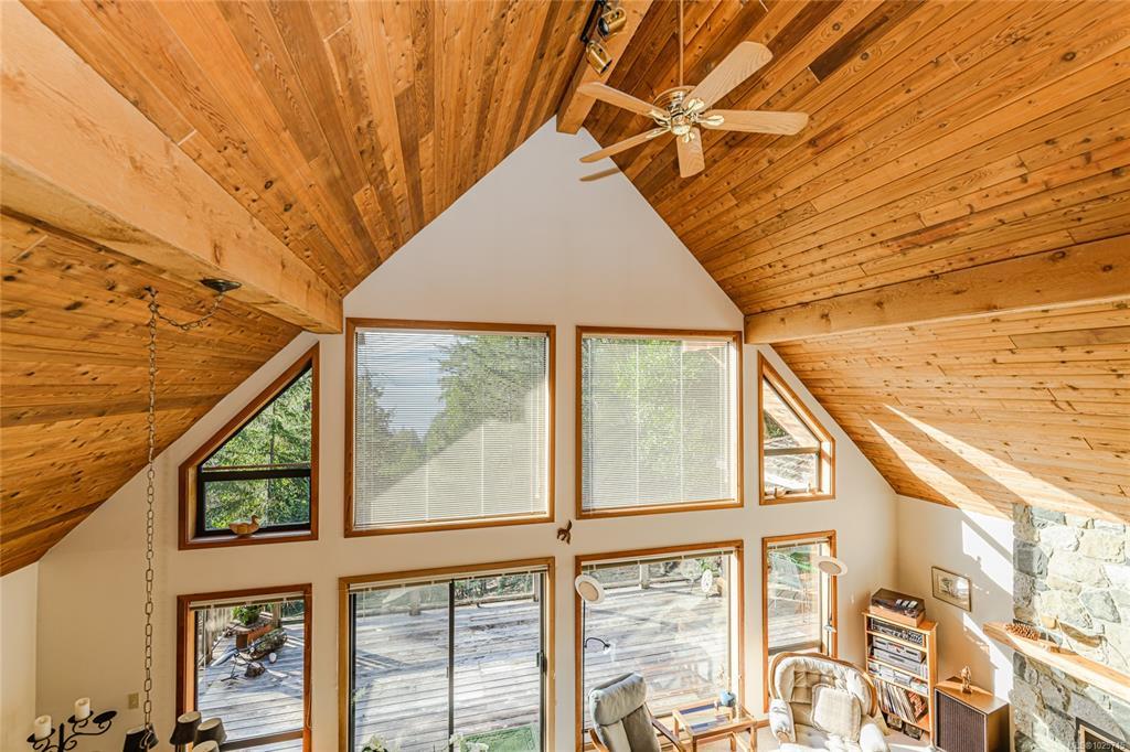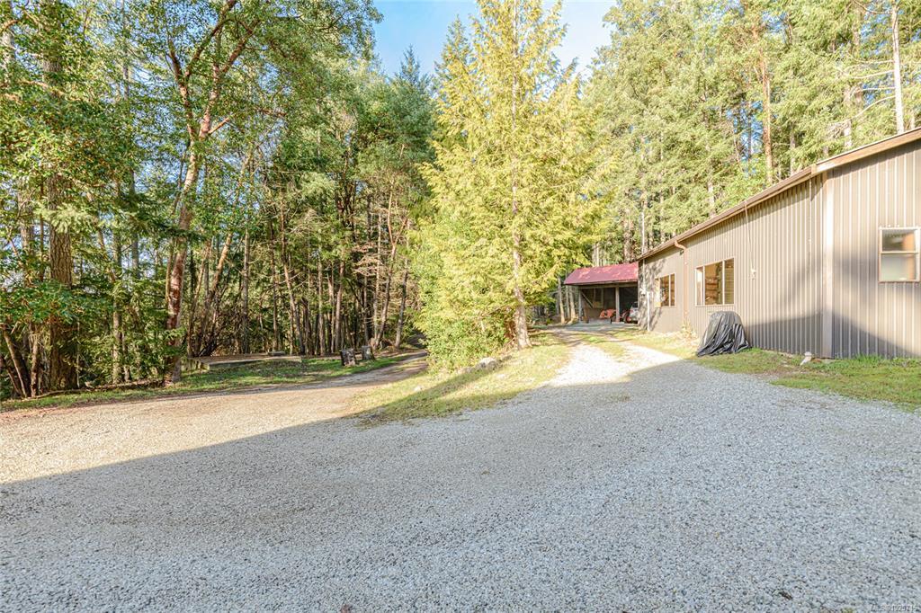 Privately perched on 5+ forested acres, this cherished 3-bedroom, 3-bathroom West Coast home offers a detached 1,200-square-foot workshop and a three-bay carport. Open-concept and well-appointed, this beautifully maintained residence spans over 2,500 square feet and features a bedroom and bathroom on each level. Highlights include a floor-to-ceiling flagstone wood-burning fireplace, soaring tongue-and-groove ceilings extending to the second-story mezzanine, ample storage, cold room space, and corridor ocean views toward Idol Island in Stuart Channel. The workshop is expansive, with multiple windows creating a bright workspace, oversized doors at each end, its own bathroom, and a freestanding wood stove — ideal for keeping the winter chill at bay. Located in a quiet rural setting, the property is surrounded by quality homes on large acreages and offers neighbourhood access to walking trails. Book your appointment to view this special home. Well priced at $1,299,900.