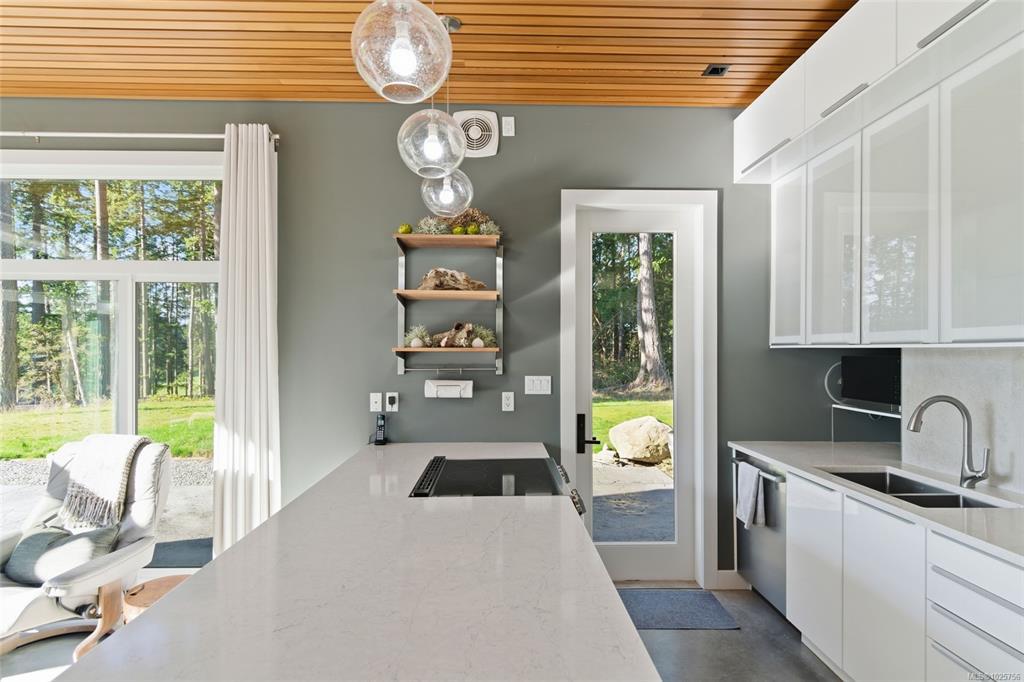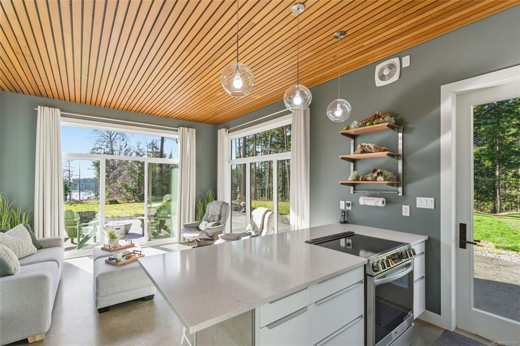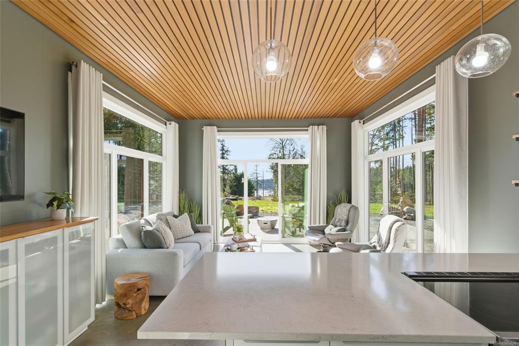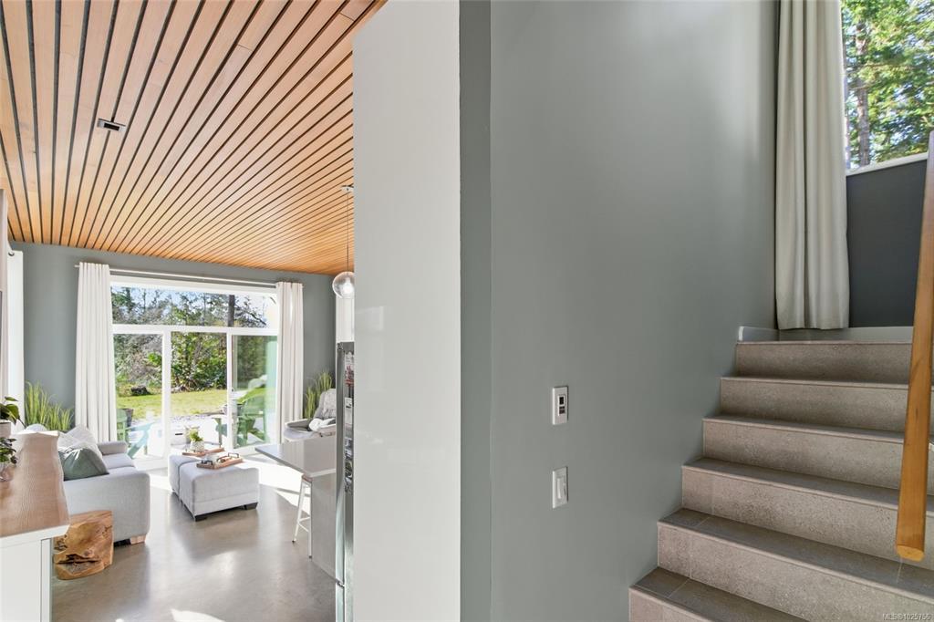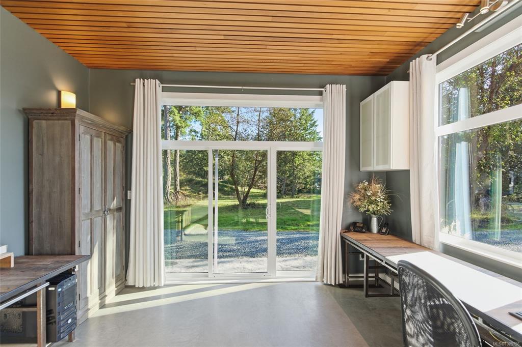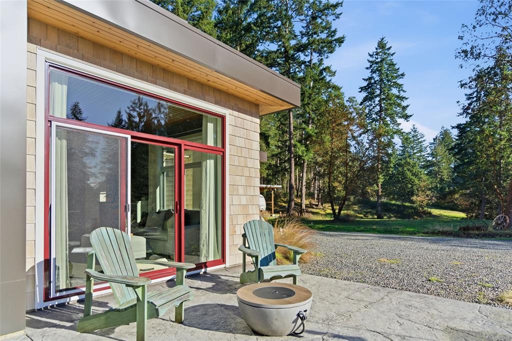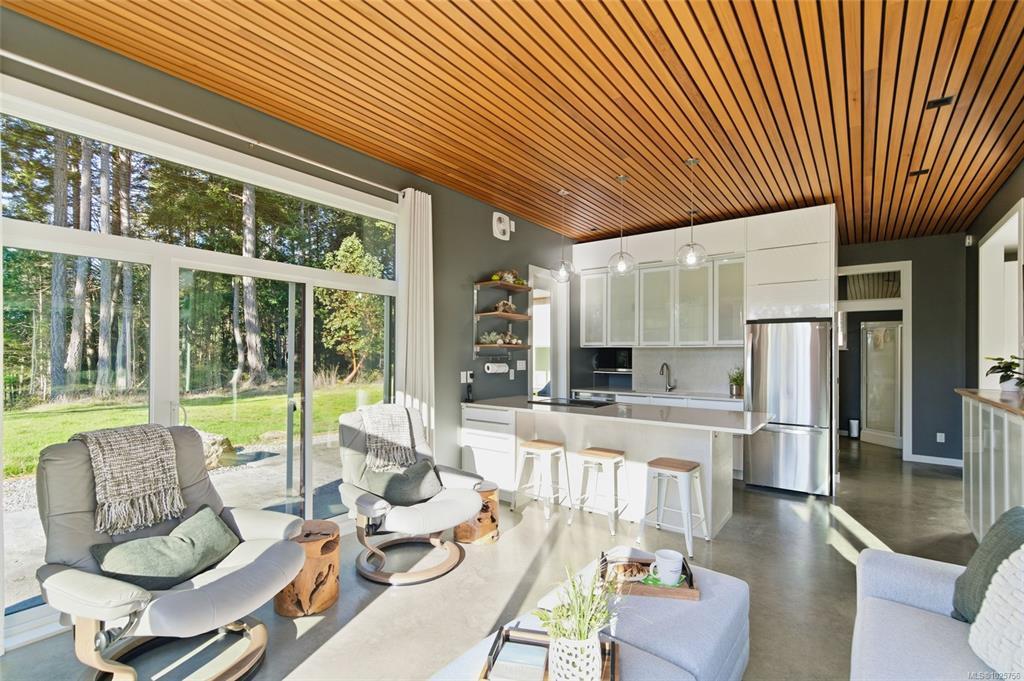 Tucked into the peaceful landscape of Gabriola’s sunny south end, this beautifully designed architectural 2-bedroom, 2-bathroom home offers a blend of modern comfort and relaxed island living. Thoughtfully positioned to capture natural light, the home features polished concrete floors with in-floor heating, 10-foot ceilings, and expansive walls of glass creating a bright, welcoming space year-round. Set on nearly 6 acres, the property offers privacy, open sunny areas, and gentle ocean views overlooking Degnen Bay. A large 1000+ sq ft workshop provides excellent flexibility for hobbies, projects, or storage, while a detached 9x14 studio is ideal for a home office, art space, or yoga/wellness room.Located near Drumbeg Provincial Park, scenic trails, and two marinas, this property captures the essence of Gulf Island living — peaceful, private, and connected to nature. Full information package, floor plans and virtual tour are available. All information to be verified if deemed important.