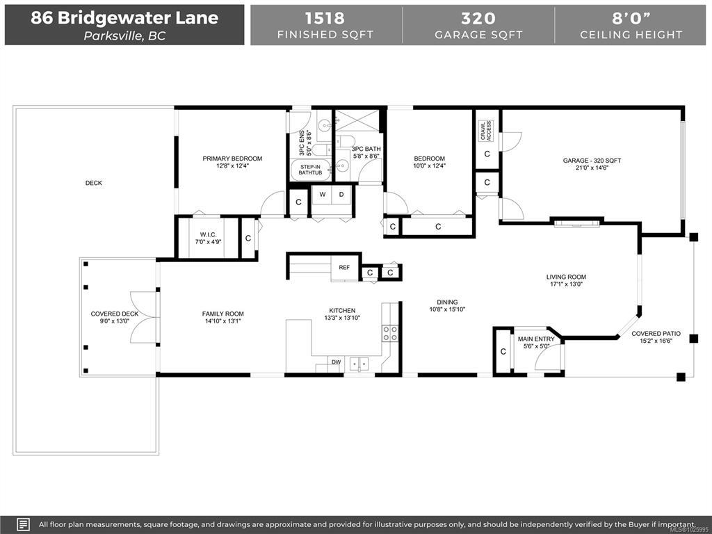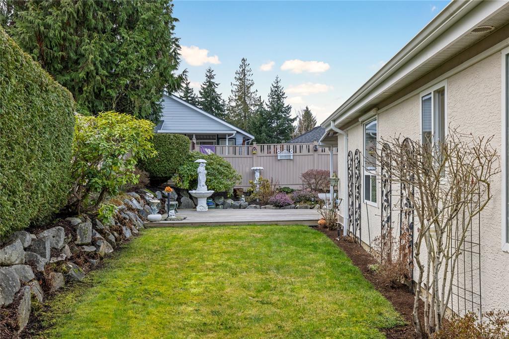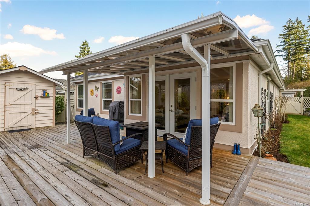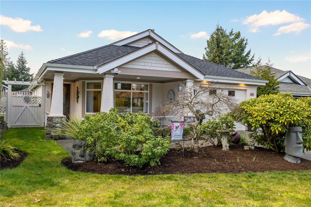 Nestled in a tranquil neighbourhood, Bridgewater Lane hosts 30 bare land strata homes. This 2 bedroom, 2 bathroom home offers a comfortable and inviting living space. When entering you will be greeted with a cozy living area complete with a gas fireplace and dining area. The kitchen is open to the family area with views of the lovely, private back yard complete with a covered seating area, garden shed and mature flowering plants. This home has been tastefully updated in recent years with a new roof, furnace, hot water tank, engineered hardwood floors, quartz countertops, appliances and more. The property itself is situated in the beautiful city of Parksville, known for its stunning natural scenery and recreational opportunities. With its convenient location and cozy interior, this home is an ideal home for those seeking a peaceful and comfortable lifestyle.