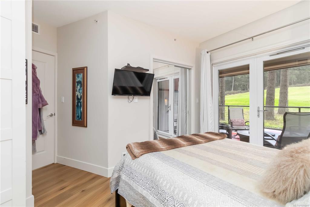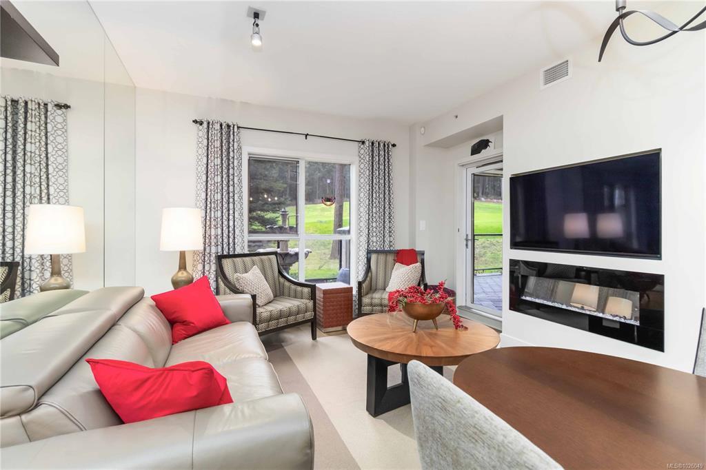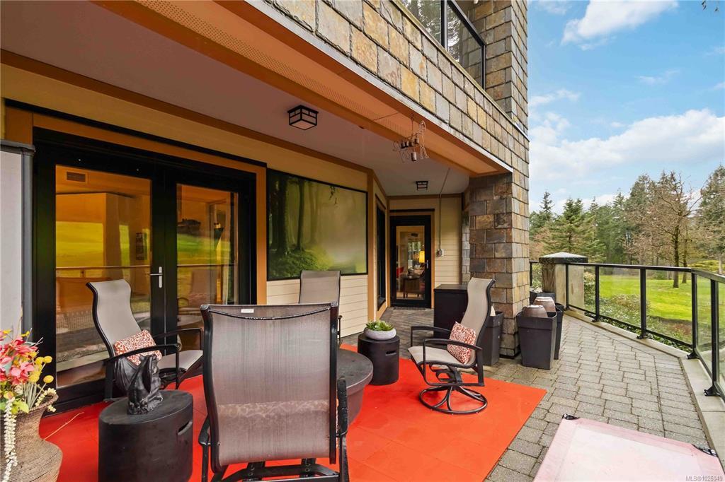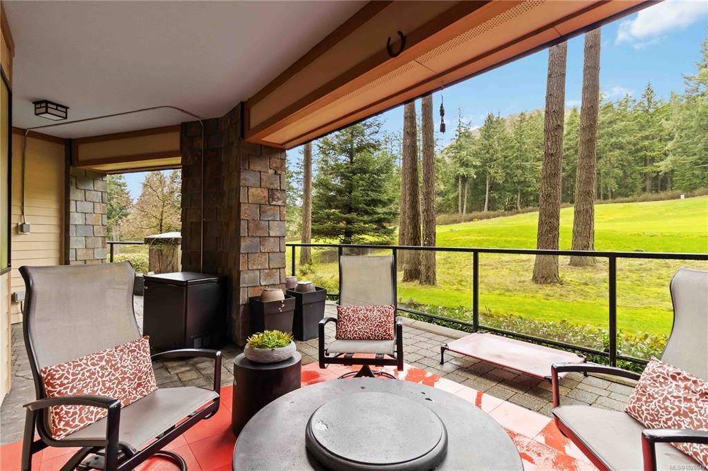 Beautifully updated & thoughtfully appointed ground-floor condo offering 2 BD / 2 BA & approx. 900 sq ft of well-designed living space. Quietly located on the tranquil side of the building with views of the Bear Mountain golf course, Mt Finlayson & Mt Baker. Interior features a spacious primary BD w/4-pc ensuite, 2nd BD & additional 3-pc BA. The kitchen offers floor-to-ceiling cabinetry, SS appliances, new gas cooktop, new dishwasher, granite countertops & a striking waterfall island. Additional upgrades include new plank flooring, Napoleon electric FP w/Bluetooth, mirrored feature wall, forced-air heat & A/C, plus laundry w/ventless dryer. Enjoy an exceptional 460 sq ft private patio w/gas BBQ hookup, afternoon sun & access from both living room & primary BD. Building amenities include fitness centre, theatre rm & rec lounge. Includes 1 secure UG parking stall & separate storage locker. Located in Bear Mountain’s premier golf resort community. See Agent Site For More Info!