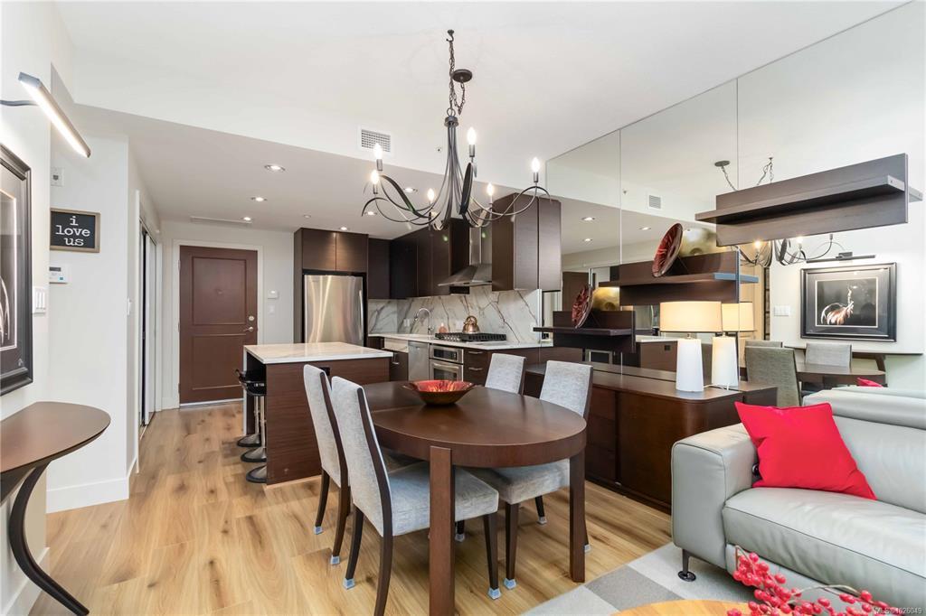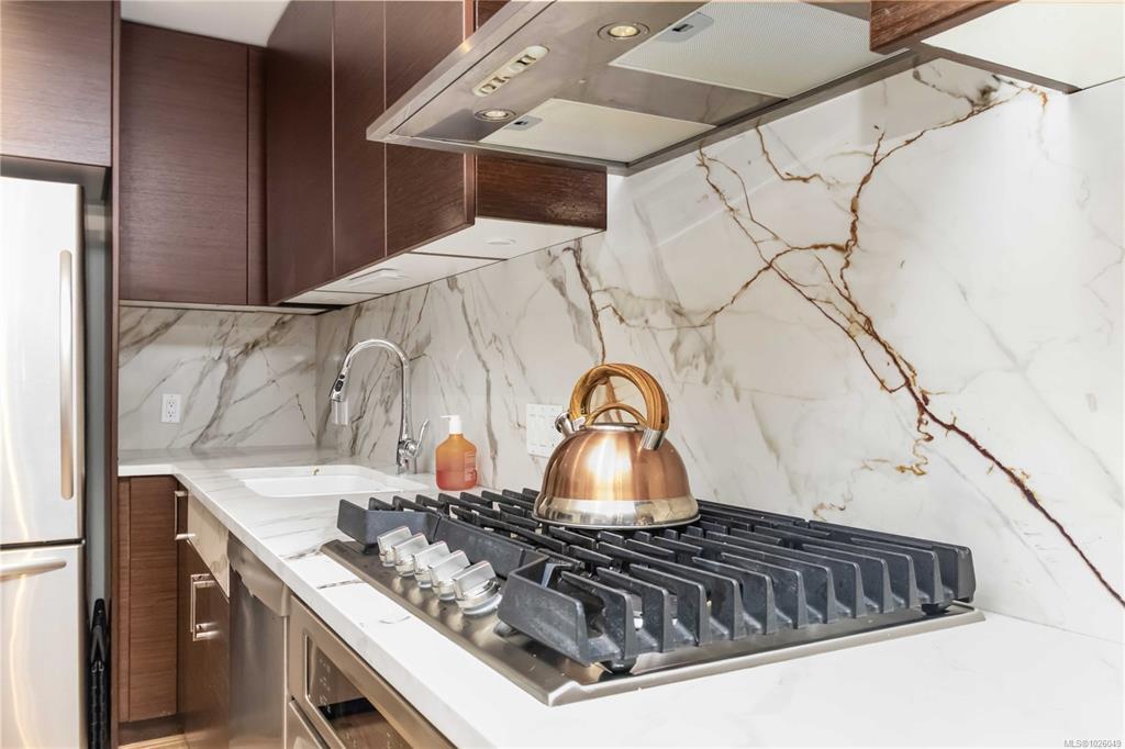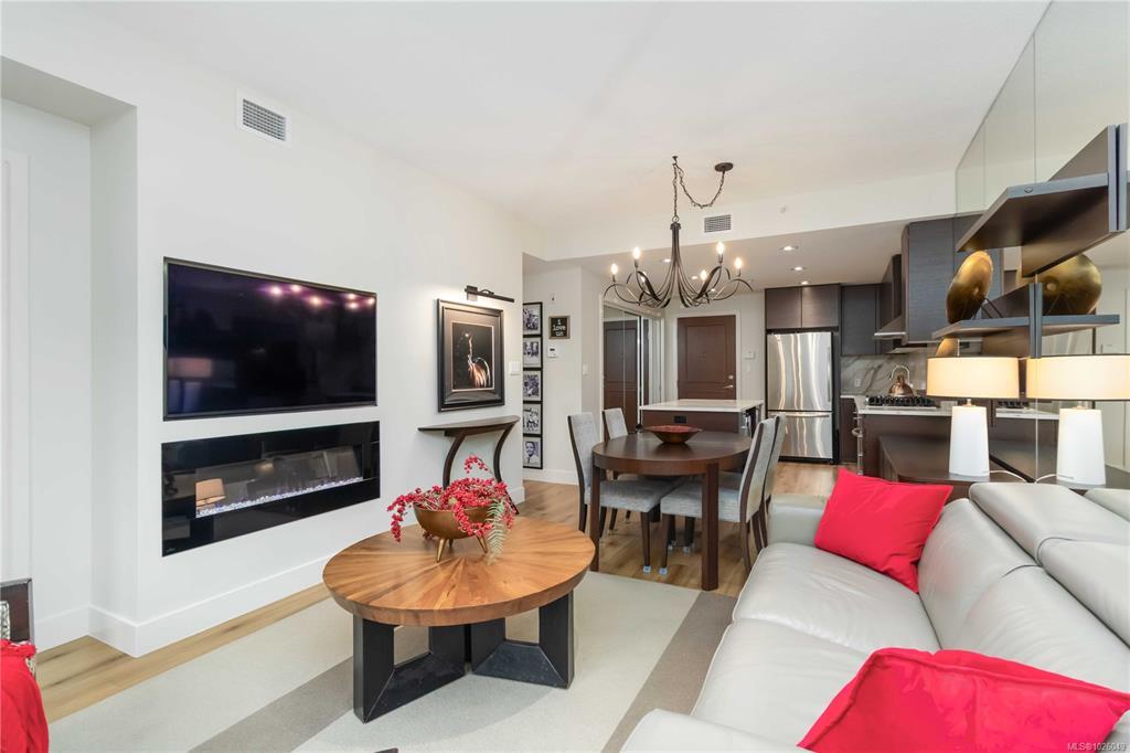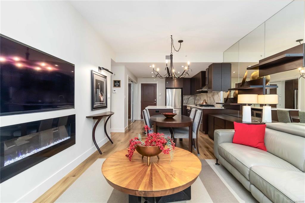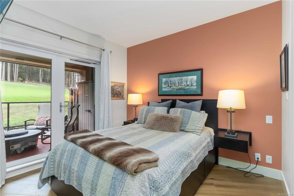 Beautifully updated & thoughtfully appointed ground-floor condo offering 2 BD / 2 BA & approx. 900 sq ft of well-designed living space. Quietly located on the tranquil side of the building with views of the Bear Mountain golf course, Mt Finlayson & Mt Baker. Interior features a spacious primary BD w/4-pc ensuite, 2nd BD & additional 3-pc BA. The kitchen offers floor-to-ceiling cabinetry, SS appliances, new gas cooktop, new dishwasher, granite countertops & a striking waterfall island. Additional upgrades include new plank flooring, Napoleon electric FP w/Bluetooth, mirrored feature wall, forced-air heat & A/C, plus laundry w/ventless dryer. Enjoy an exceptional 460 sq ft private patio w/gas BBQ hookup, afternoon sun & access from both living room & primary BD. Building amenities include fitness centre, theatre rm & rec lounge. Includes 1 secure UG parking stall & separate storage locker. Located in Bear Mountain’s premier golf resort community. See Agent Site For More Info!