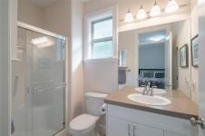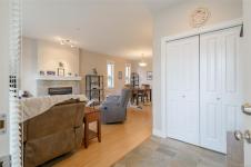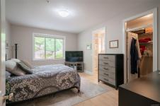 The spacious kitchen-family room features a large walk-in pantry and island. The home features a separate dining/living room with an updated gas fireplace. The primary bedroom includes a walk-in closet with access to the crawl space for extra storage and a 3-piece ensuite. Recent upgrades over the last 2 years include a heat pump, complete interior paint job, new plumbing fixtures in baths and kitchen, new flooring in bedrooms, den and in the laundry room. The sale price includes a new washer and dryer, a "cabinet bed" and updated low maintenance landscaping off the private rear patio.