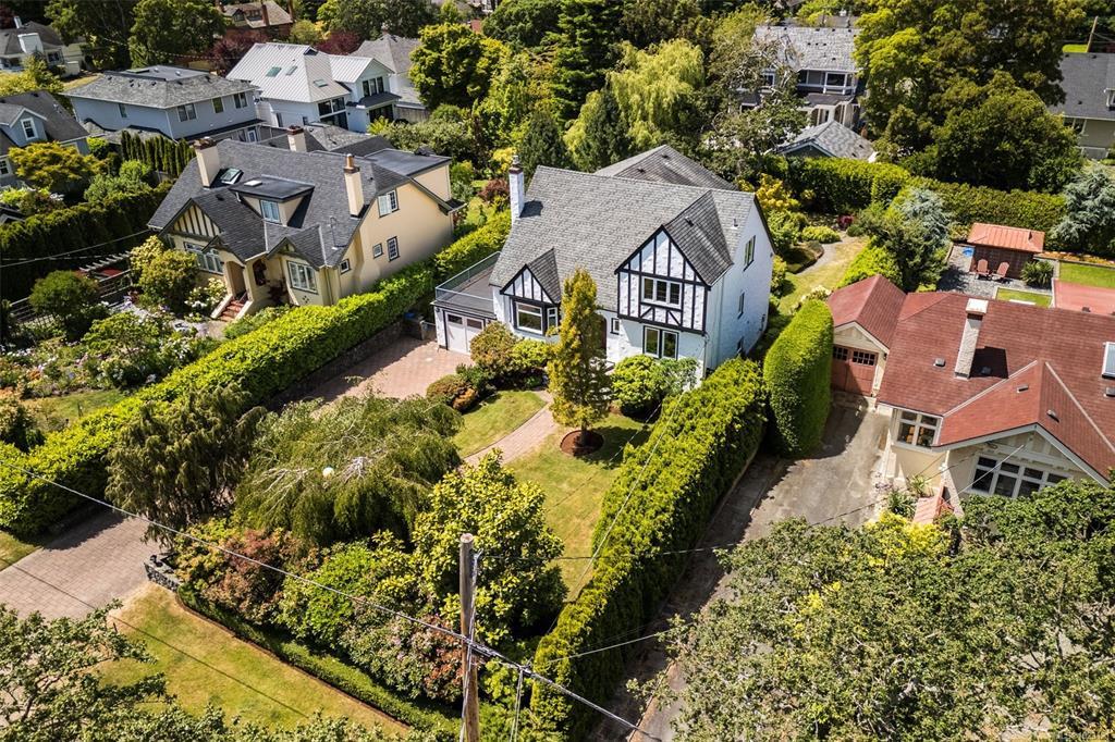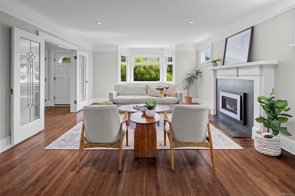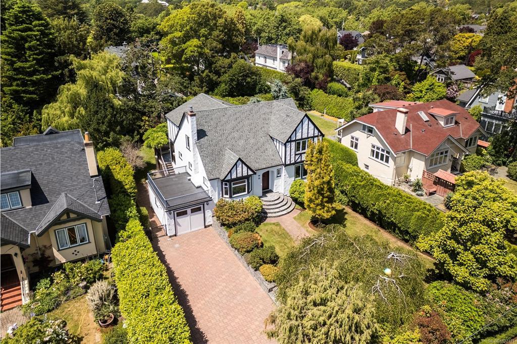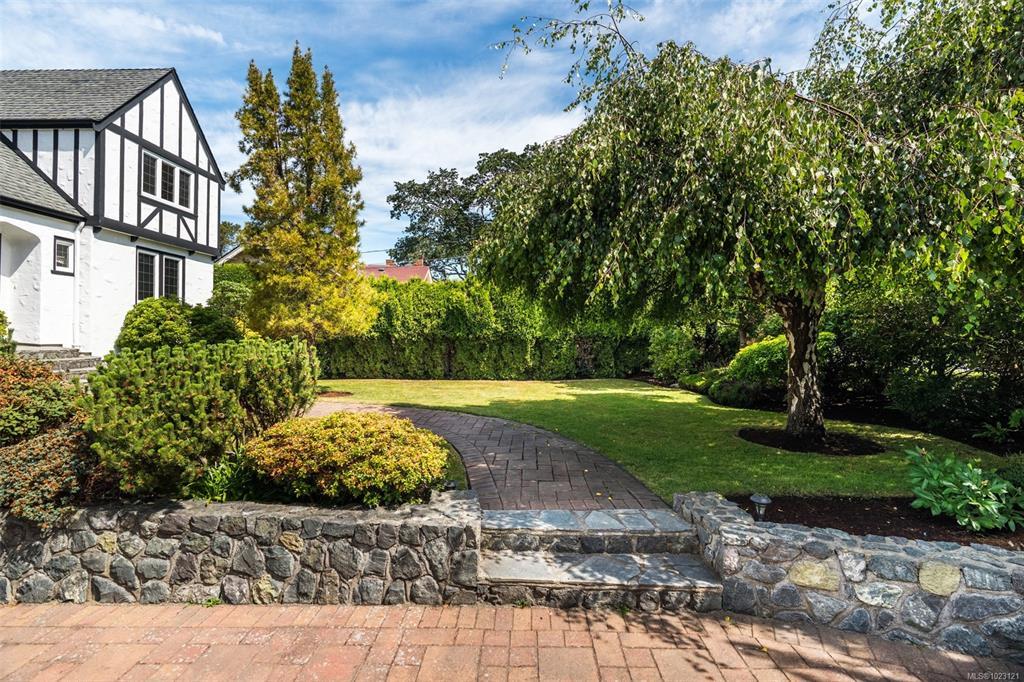 Beautifully renovated 1930s character home, situated on a private, fully manicured, sprawling west-facing lot in South Oak Bay. This timeless residence offers period details that evoke an era of genuine craftsmanship. Features include wood floors, coved ceilings, French doors, a gas fireplace and updated windows that let in light from every angle. The open-concept kitchen is the perfect setting for dinner parties & family gatherings, and flows seamlessly to the sunny back deck with a wisteria-wrapped arbour. The flexible, spacious layout offers 3 bedrooms upstairs, each with its own walk-in closet, a stunning ensuite with a soaker tub overlooking the gardens, and a main-level bedroom and full bath. The fully finished 1-bed, 1-bath walk-out basement, plumbed for a suite, is a rare find. Thoughtful updates include plumbing, electrical, gas-fired hot water and boiler heating system. Located on a coveted, charming street, this home and property truly epitomize the essence of Oak Bay living