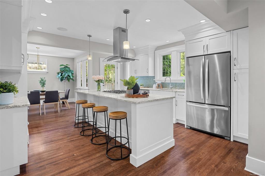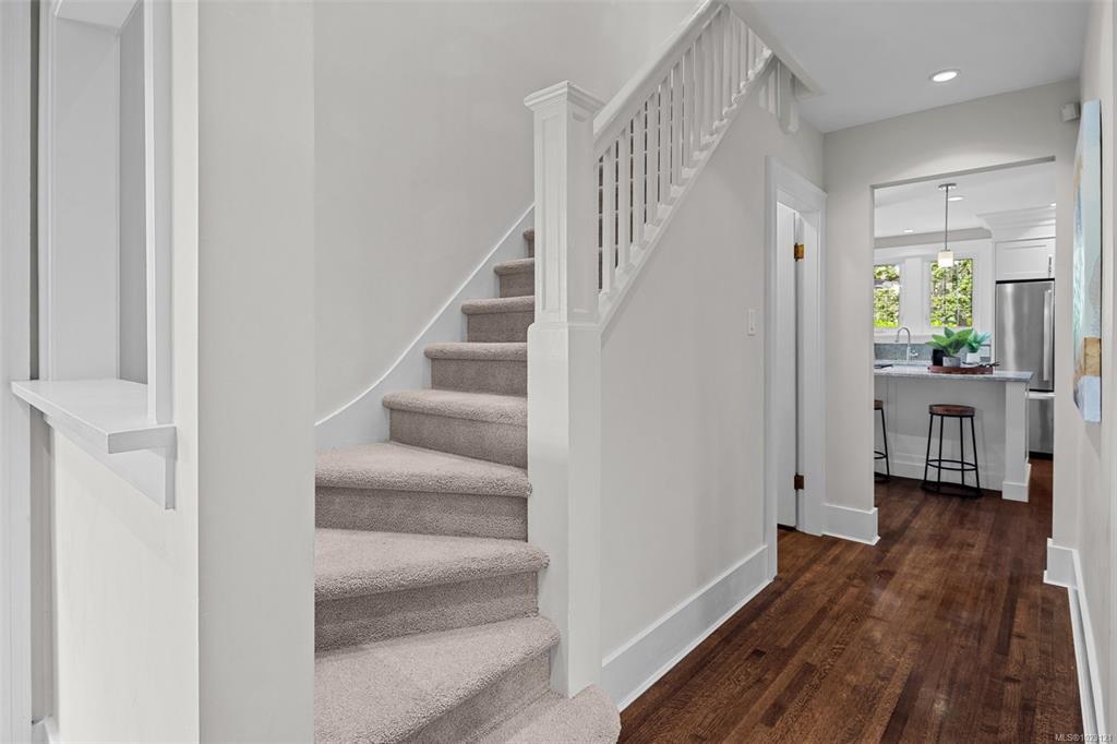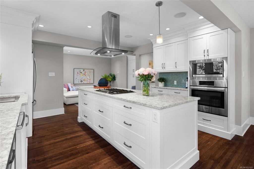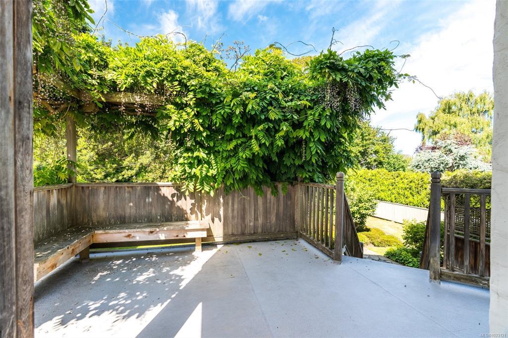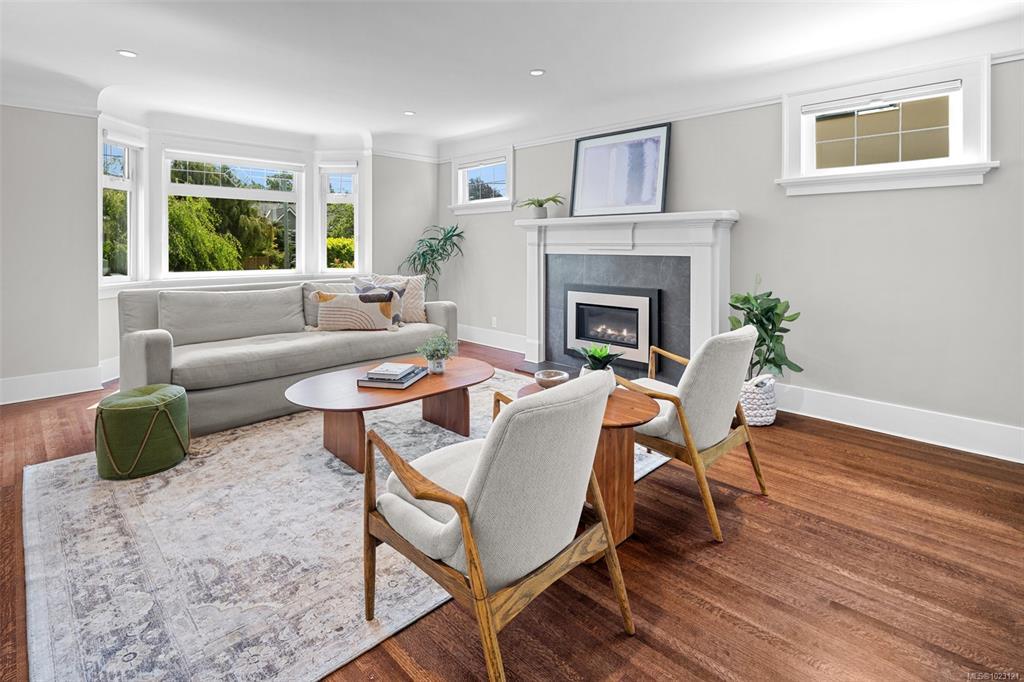 Beautifully renovated 1930s character home, situated on a private, fully manicured, sprawling west-facing lot in South Oak Bay. This timeless residence offers period details that evoke an era of genuine craftsmanship. Features include wood floors, coved ceilings, French doors, a gas fireplace and updated windows that let in light from every angle. The open-concept kitchen is the perfect setting for dinner parties & family gatherings, and flows seamlessly to the sunny back deck with a wisteria-wrapped arbour. The flexible, spacious layout offers 3 bedrooms upstairs, each with its own walk-in closet, a stunning ensuite with a soaker tub overlooking the gardens, and a main-level bedroom and full bath. The fully finished 1-bed, 1-bath walk-out basement, plumbed for a suite, is a rare find. Thoughtful updates include plumbing, electrical, gas-fired hot water and boiler heating system. Located on a coveted, charming street, this home and property truly epitomize the essence of Oak Bay living