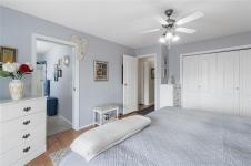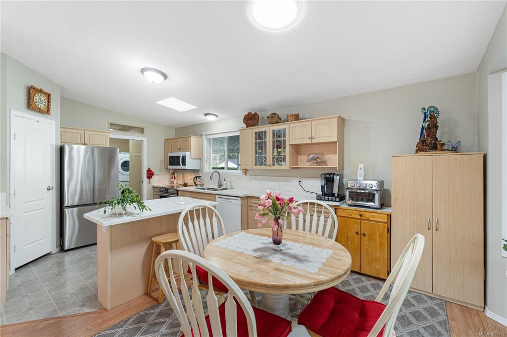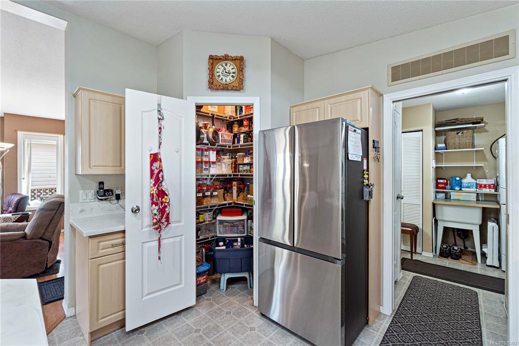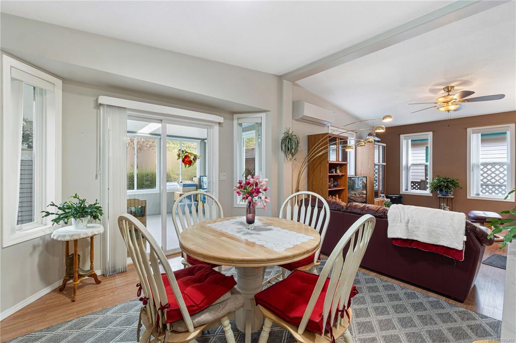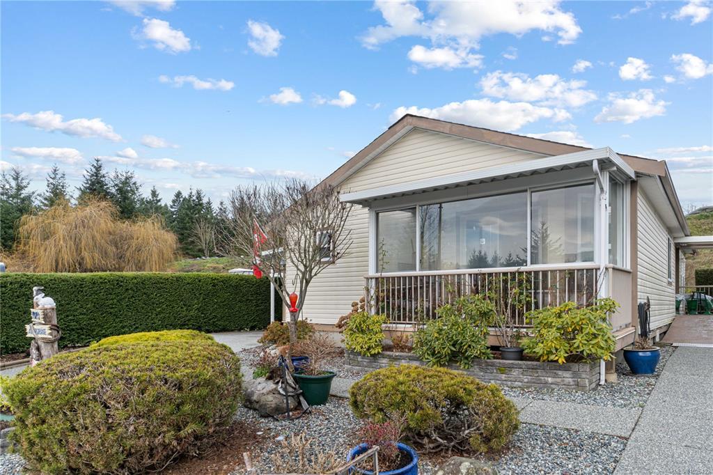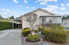 At the end of quiet road your retirement begins. Act quickly on this opportunity to own an immaculate home in popular Crest 11 Estates. Here is a three bedroom, two bath residence that features an open concept layout. The beautiful updated kitchen includes sold surface counters a nice size island and a new fridge and induction stove. The vaulted ceilings in the living room/dining room are are a nice touch. The dining room has a access to one of two sunrooms. Three good size bedrooms, the primary has a 3 piece ensuite and a second covered sunroom. Big plus are the two wired sheds, perfect for hobbies. The location is park is ideal and backs on green space for added privacy. Lots of gardening options available and the heat pump provides year round comfort. Residents love this location close to all levels of shopping. Measurements by Proper Measure buyer to verify if important.