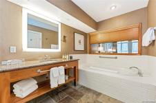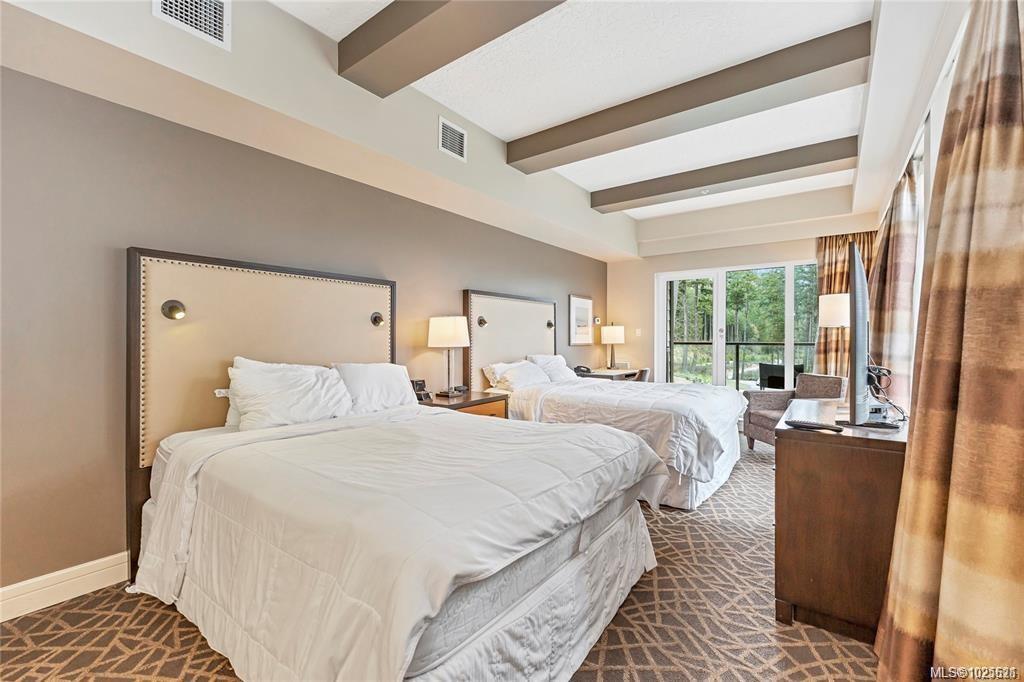 Own a quarter-share in one of Bear Mountain’s most desirable resort settings at the Fairways Hotel. Nestled at the base of Mt. Finlayson, this spacious 1610 sqft main-floor suite offers a flexible layout with a one-bedroom, two-bath residence featuring a full kitchen and fireplace, plus a self-contained one-bedroom lock-off with its own bath and kitchenette. Perfectly situated along the first fairway of a Jack Nicklaus–designed course, this property blends luxury with effortless recreation. Enjoy walkable access to dining, spa services, and boutique amenities, along with clay tennis courts, world-class mountain biking, and the Bear Mountain Activity Centre with fitness facilities and outdoor pool. Conveniently located just 25 minutes from downtown Victoria. When not in use, the suite is professionally managed by hotel staff, providing revenue potential. A rare opportunity to secure a foothold in Bear Mountain’s resort lifestyle. Pictures of simular unit in building.
