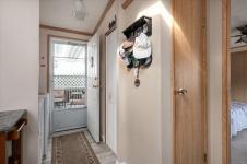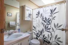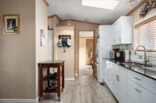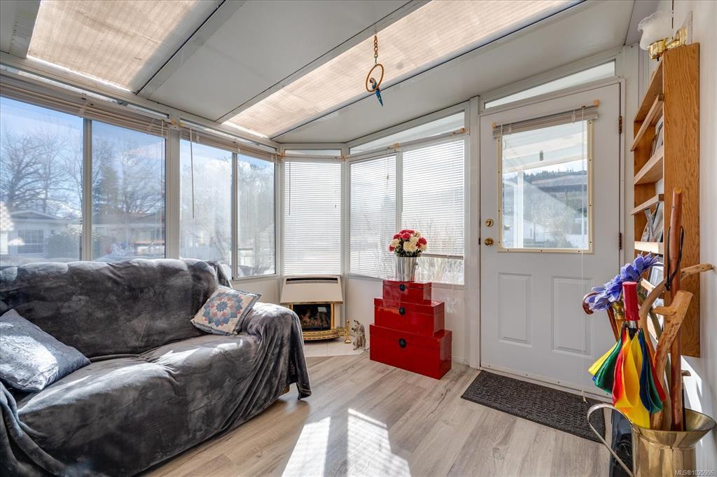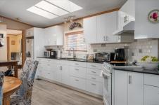 Inside offers a welcoming atmosphere. A heat pump provides efficient year-round heating and cooling, while the cozy sunroom/family room with a gas fireplace offers the perfect retreat for relaxing evenings or hosting guests. The kitchen was updated in 2022 and features a skylight that fills the space with natural light. New hot water tank in 2021. Newer flooring (2023) enhances the ensuite, kitchen, living, and dining areas adding a fresh, modern touch. 1 small pet is allowed, see park rules.