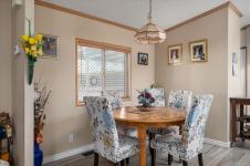Location is the key to this beautifully updated 2-bedroom, 2-bathroom rancher offering nearly 1,100 sq. ft. of bright, open-concept living in the highly desirable Valley Oaks 45+MHP. With two separate driveways, a carport, a covered deck, and a thoughtfully designed low-maintenance garden is ideally located near the Aquatic Centre, Buttertubs Bird Sanctuary, ice rink, shopping, and transit.