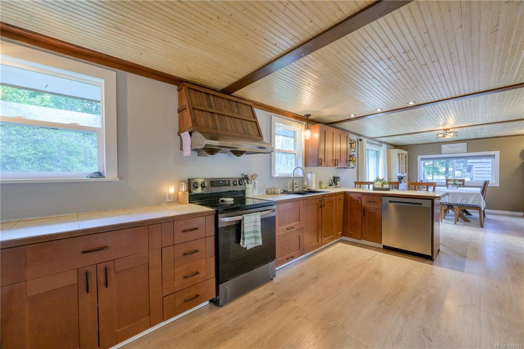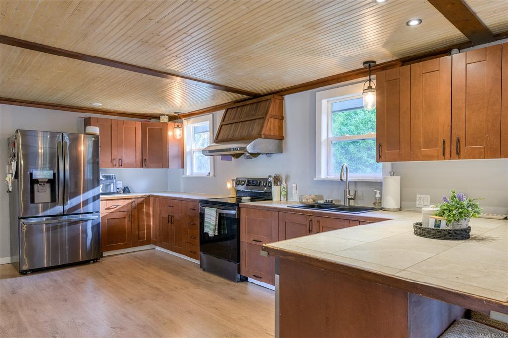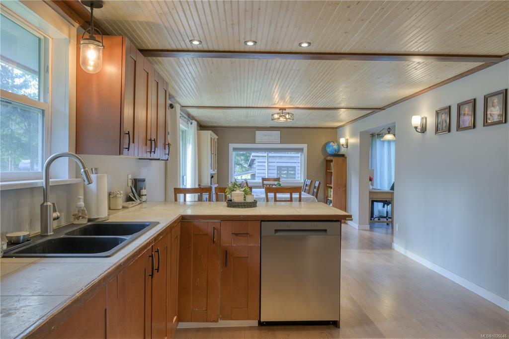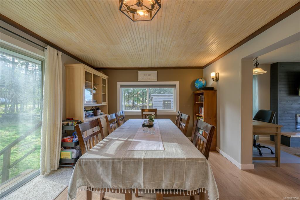 Set on 2.3 acres in Hyde Creek with peek-a-boo ocean views, this spacious property offers over 2,000 sqft of finished living space plus a 926 sqft unfinished basement equipped with a newer wood stove and ready for your ideas. The main level features newer flooring in primary bedroom, kitchen/dining room and living room, a stunning feature wall with electric fireplace, a generous dining area, and a bright, functional kitchen with an oversized walk-in pantry offering exceptional storage. Down the hall you’ll find 3 bedrooms and 1.5 bathrooms, including a large primary retreat with its own sitting area, and walk-in closet. The second bedroom includes access to a finished attic space (200+ sqft) ideal for storage, office, or flex space. Outside, enjoy a fenced area, a variety of fruit trees, room for hobby farming, and hydro, water, and septic hookups already in place for a tiny home or secondary dwelling, perfect for guests, income, or multi-generational living.