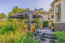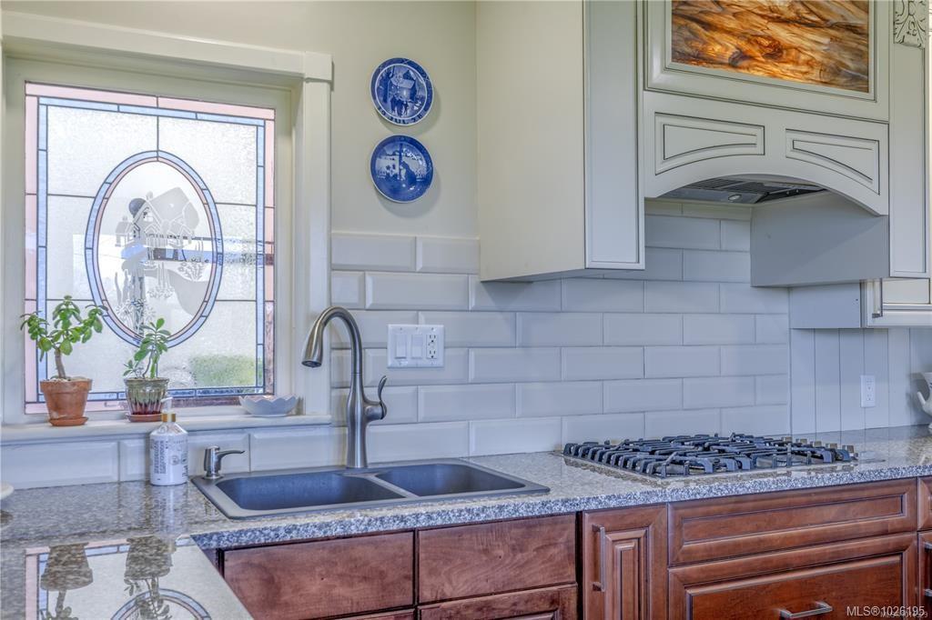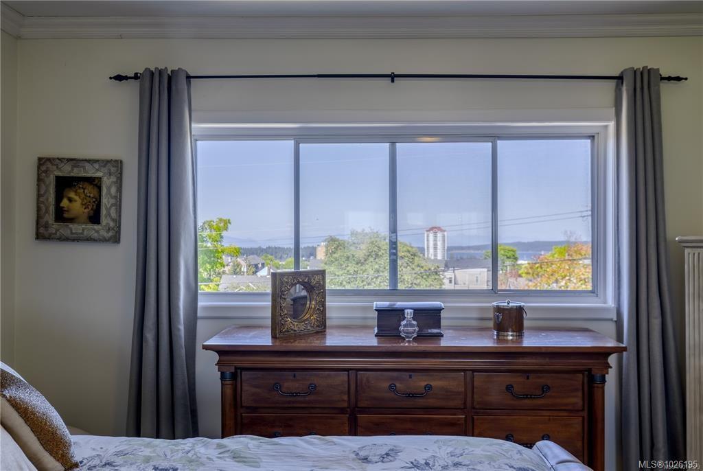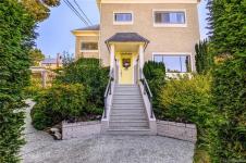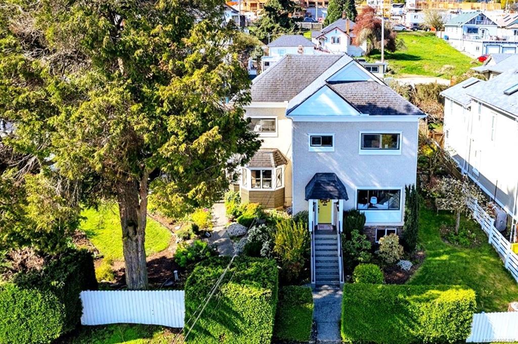 Old City Quarter Home with Ocean Views and beautifully renovated 2,500 sq. ft. 3-bed, 2-bath home & shop on a 0.22-acre corner lot. Bright interiors feature oak floors, stained glass, crown molding, and a grand staircase, blended with modern updates—heat pump with A/C, renovated baths, and a stylish custom designed kitchen with island, granite counters, and breakfast nook. Plenty of storage. All new plumbing and electrical. Stunning harbor and mountain views from main and upper floors. Lower level offers office/den, laundry, and storage. Enjoy private gardens, fruit trees, patios, and a courtyard. Detached wired work shop or single car garage plus ample additional parking. Zoned R14 for potential future development—ideal for a carriage house or fourplex with room to grow (Buyer to do own due diligence). All data must be verified if deemed to be important. Just steps away to Harbor-Air, Helijet and BC Ferry rides to Vancovuer. On bus route. Easy to show, don't miss out on this one!