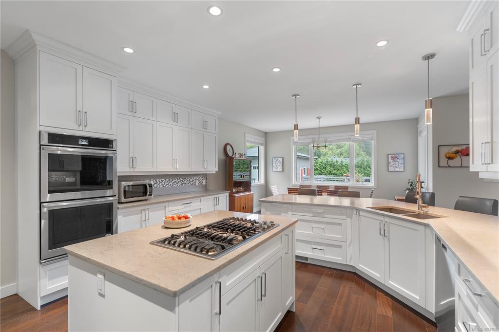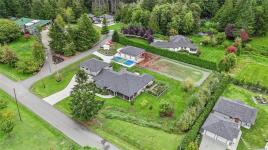 Custom-built rancher on a quiet cul-de-sac in beautiful North Saanich—where scenic trails surround you, the charming town of Sidney is minutes away, and downtown Victoria is just a short drive. Thoughtfully designed, this 4-bedroom, 3-bathroom home features wide hallways, spacious living areas, and 9’ ceilings throughout. The bright, open-concept great room and chef’s kitchen are perfect for hosting family and friends. Enjoy seamless indoor-outdoor living with front and rear stamped concrete patios, a cozy fire pit, and your very own pickleball court. The 2-bedroom legal suite above the 3-car garage offers flexibility for extended family or rental income.